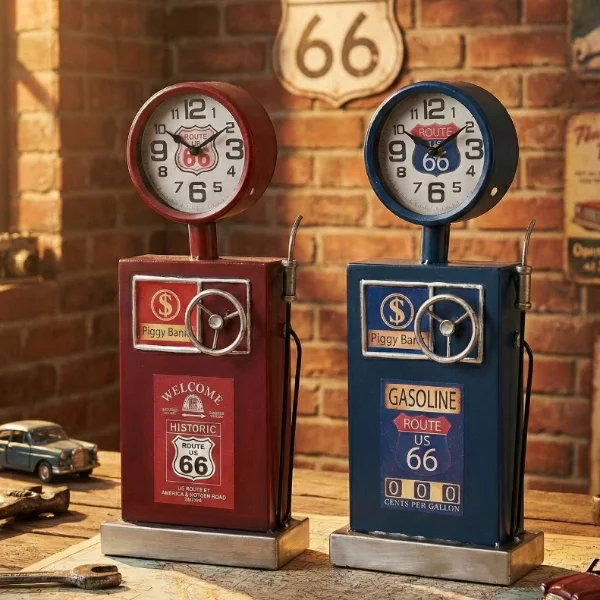 Klasik Benzinlik Tasarımlı Masaüstü Saat