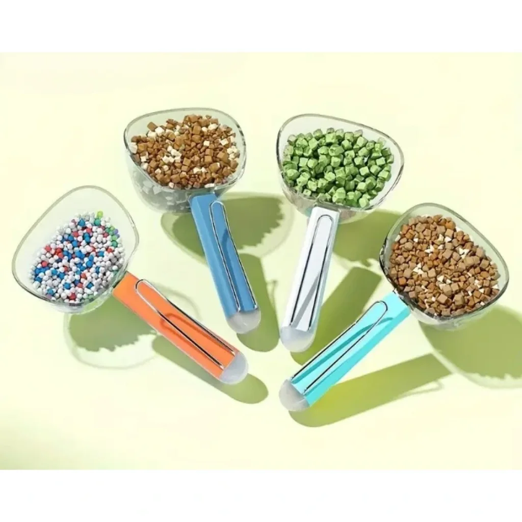 KLİPSLİ ÖLÇEKLİ KEDİ KÖPEK MAMA KÜREĞİÜrün ÖzellikleriKlipsli ölçülü kedi köpek mama küreği, hem mama ölçme hem de torba kapatma işlevi sunan pratik bir evcil hayvan ürünüdür. Şeffaf başlığı sayesinde ve üzerindeki ölçek sayesinde mama miktarını net şekilde görmenizi sağlar. 180 ml kapasitesindedir. Ergonomik yapısı sayesinde kolay tutuş sunar ve üzerindeki entegre klips ile mama poşetini kapatarak tazeliğini korur. Hafif ve dayanıklı plastik malzemeden üretilmiştir. Kürek başlığı ortalama mama porsiyonunu rahatça alacak şekilde tasarlanmıştır. Farklı renklerde mevcut olan ürün karışık olarak gönderilmektedir. Hem kedi hem de köpek mamalarıyla uyumlu şekilde kullanılabilir.Evcil hayvan mamalarını hijyenik, düzenli ve kontrollü bir şekilde vermek isteyenler için ideal bir çözümdür.Paket İçeriği1 Adet Klipsli Ölçekli Kedi Köpek Mama Küreği
