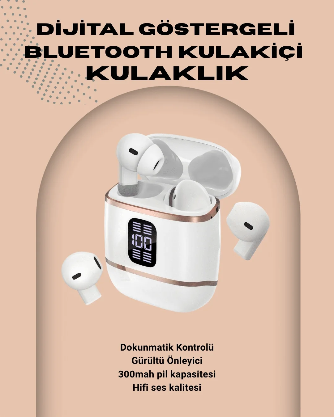 Kulakiçi Bluetooth Kulaklık V5.3 – 4’lü Set, Dijital Ekranlı, Gürültü Engelleme