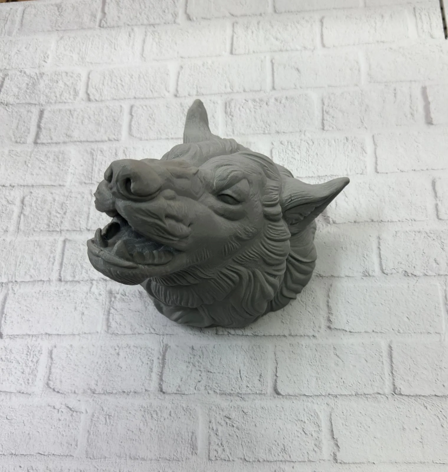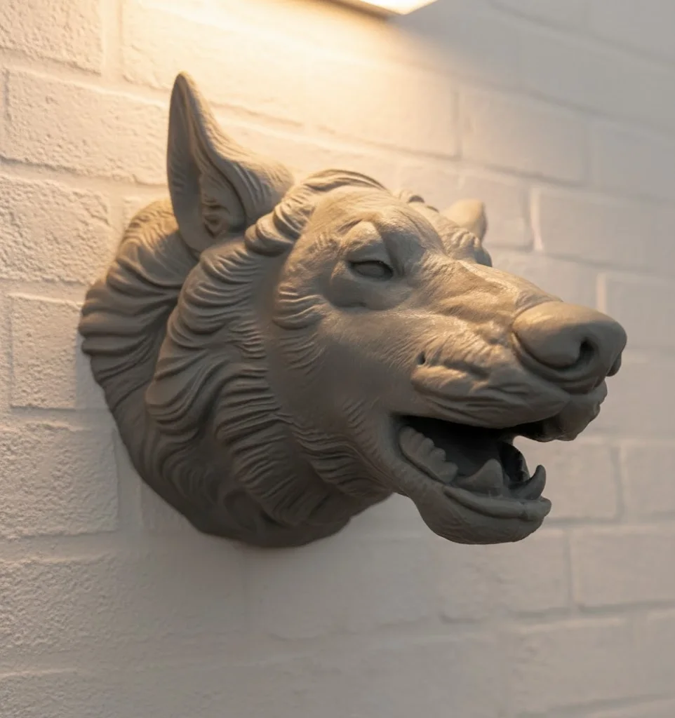 Kurt Başı Duvar Aksesuarı Gri Renk Asılabilir Hediyelik Figür