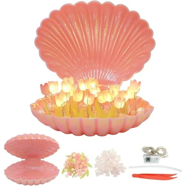 LED Işıklı Kendin Yap Deniz Kabuğu Tasarımlı Lale Lamba