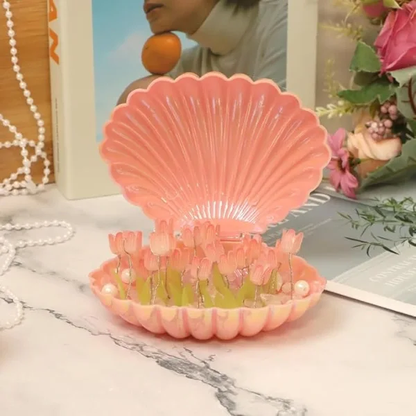 LED IŞIKLI KENDİN YAP DENİZ KABUĞU TASARIMLI LALE LAMBAÜrün ÖzellikleriEstetik tasarımıyla dikkat çeken LED ışıklı deniz kabuğu lamba, içindeki lale figürleriyle birlikte şık bir dekoratif ürün haline gelir. Kendin yap (DIY) set olarak sunulan ürün, içerisinde LED ışık, yapay laleler, dekoratif taşlar ve montaj aparatı ile birlikte gelir. Açılabilir pembe deniz kabuğu tasarımı sayesinde hem gece lambası hem de süs objesi olarak kullanıma uygundur. Yumuşak LED ışığı ortama sıcaklık katarken, ev dekorasyonuna romantik bir hava verir. Özellikle hediye olarak da tercih edilebilecek bu ürün, kullanıcıya kendi tasarımını oluşturma keyfi sunar.Paket İçeriği1 Adet LED Işıklı Kendin Yap Deniz Kabuğu Tasarımlı Lale Lamba