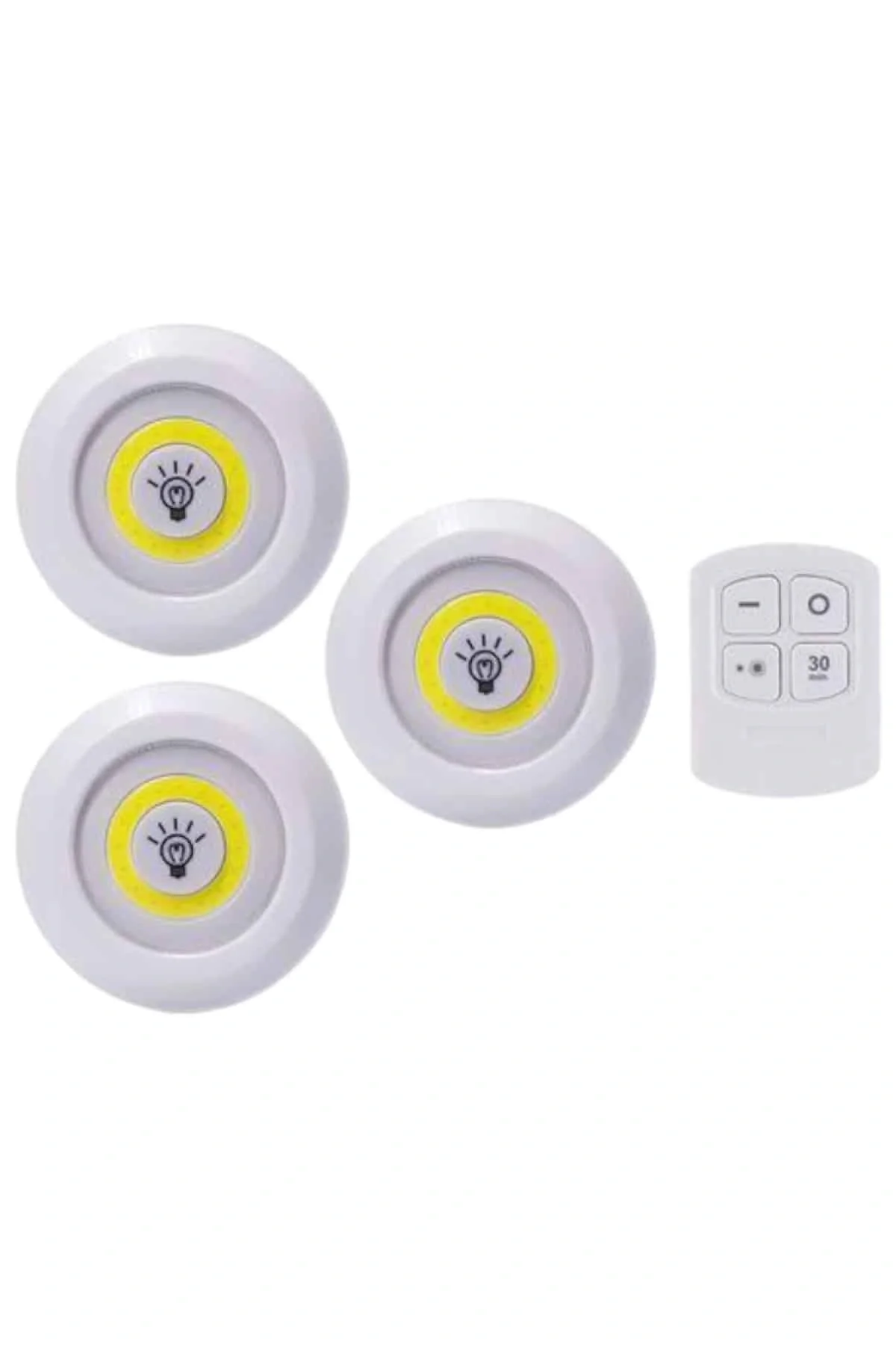 Işık rengi :Beyaz (gün ışığı)Işık pil tipi: 3 x aaa pil (dahil değildir)Uzaktan kumanda pili tipi: 2 x aaa pil (dahil değildir)Led Işık Kablosuz Uzaktan Kumandalı Dolap Içi Led Ampul Seti 3lü Set Gece Lambası Spot LambaUzaktan Kumandalı 3 Lü Ayarlanabilir Spot LED Işık Kablosuz Lamba Kumandalı Işık Ayarlanabilir 3lü Led IşıkPilli Süre Ayarlı · Çok şık ve kullanışlı modern bir üründür.Kaliteli malzemeden hoş bir görünüme sahiptir.Yapısı ile pratik kolay kullanım sunuyor. ·Temizliği de çok kolay olan sıcak görünümü ile şıklık katacakDekoratif · Estetik Ve kullanışlı · Şık tasarım · Kanserojen madde içermez · Kaliteli ham maddeden üretilmiştir.Led light with remote control set of 3 · Işık derecesini ayarlayabilirsinizYanma süresini ayarlayabilirsinizUzaktan kumanda ile kontrol edilir · Her türlü zemine kolay montaj edilir ·Güçlü led ışığa sahiptir · 3 lü set olarak gönderilirIşık pil tipi: 3 x aaa pil (dahil değildir)Uzaktan kumanda pili tipi: 2 x aaa pil (dahil değildir)Işık rengi :Beyaz (gün ışığı)Gövde malzemesi :Sert plastikAmpul ömrü: 100.000 saatKullanım Alanları: Avcılık, kamp, ev, okul, araba, otel, restoranÜrün Boyutlar: 9 cm - 2 cm