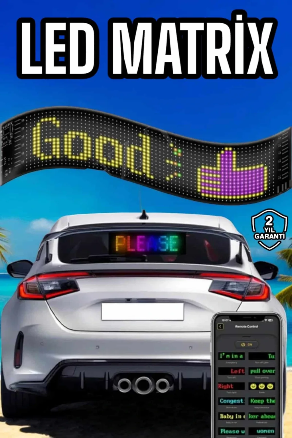 RGB LED Panel, mobil uygulama desteğiyle kullanım kolaylığı sağlar. Uygulama üzerinden yüzlerce GIF arasından istediğiniz efekti seçebilir, hatta kişisel yazılarınızı panelin üzerine ekleyebilirsiniz. Bu özellik, kişiselleştirilmiş mesajlar ve görsel içerikler oluşturmanıza olanak tanır. Örneğin, araçlara, tırlara, kamyonlara veya iş yerlerine özel reklam ve duyurular eklemek mümkündür. Ayrıca, bu özellik, kullanıcıların tasarımda daha fazla yaratıcı olmasına imkân tanır. Akıllı telefonunuz üzerinden hızlıca kontrol edilebilen bu panel, etkinliklerde, kutlamalarda ve reklam amaçlı kullanılabilmesi açısından oldukça işlevsel bir üründür.