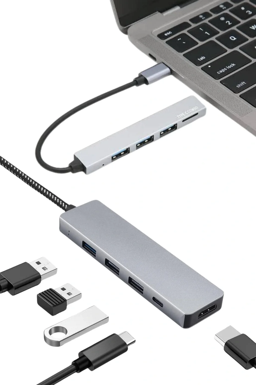 MacBook dönüştürücü, minimal boyutlarıyla taşınabilir teknolojiyi en verimli şekilde sunar. Type-C to USB 3.0 ve HDMI çıkış portu sayesinde, farklı cihazlar arasında hızlı veri aktarımı yapabilir ve geniş ekran deneyimiyle yüksek çözünürlüklü görüntüler elde edebilirsiniz. Tek bir aksesuar ile telefon, tablet ve diğer akıllı cihazlarla uyumlu bağlantı imkanı sunar, böylece ek adaptörlere ihtiyaç duymadan veri, ses ve görüntü aktarımını kolayca gerçekleştirebilirsiniz.