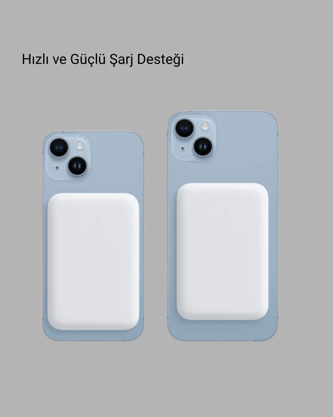 MagSafe uyumlu kablosuz batarya, hareket halindeyken bile cihazınızı zahmetsizce şarj etmenizi sağlar. Manyetik yüzeyi, iPhone’un arkasına güvenli bir şekilde tutunarak şarj sırasında kayma veya düşme riskini ortadan kaldırır. Cihazınızı bağladığınız anda otomatik olarak şarj etmeye başlar; manuel açma-kapama tuşuna gerek kalmadan kullanım kolaylığı sunar.27W hızlı şarj desteği, daha kısa sürede enerji dolumu sağlar. Lightning kabloyu taktığınızda, bataryanızı kablosuz şarj istasyonuna dönüştürerek 15W’a kadar kablosuz şarj imkanı sunar. Böylece hem kendi bataryanızı hem de cihazınızı aynı anda şarj edebilirsiniz.Kompakt, ince ve hafif yapısı sayesinde her an yanınızda taşıyabilirsiniz. Cebinize, çantanıza veya mont cebinize rahatça sığar. Dayanıklı malzemesiyle uzun ömürlü kullanım sunarken, şık görünümüyle Apple tasarım anlayışını yansıtır.Kredi kartları, uzaktan kumandalı anahtarlar gibi manyetik hassasiyet gerektiren cihazlara zarar vermeyecek şekilde üretilmiştir. Günlük kullanımda güvenli, pratik ve etkili bir şarj deneyimi yaşamak isteyen herkes için idealdir.MagSafe Battery Pack, modern yaşamın hızına ayak uyduran güçlü, zarif ve taşınabilir bir enerji çözümüdür.