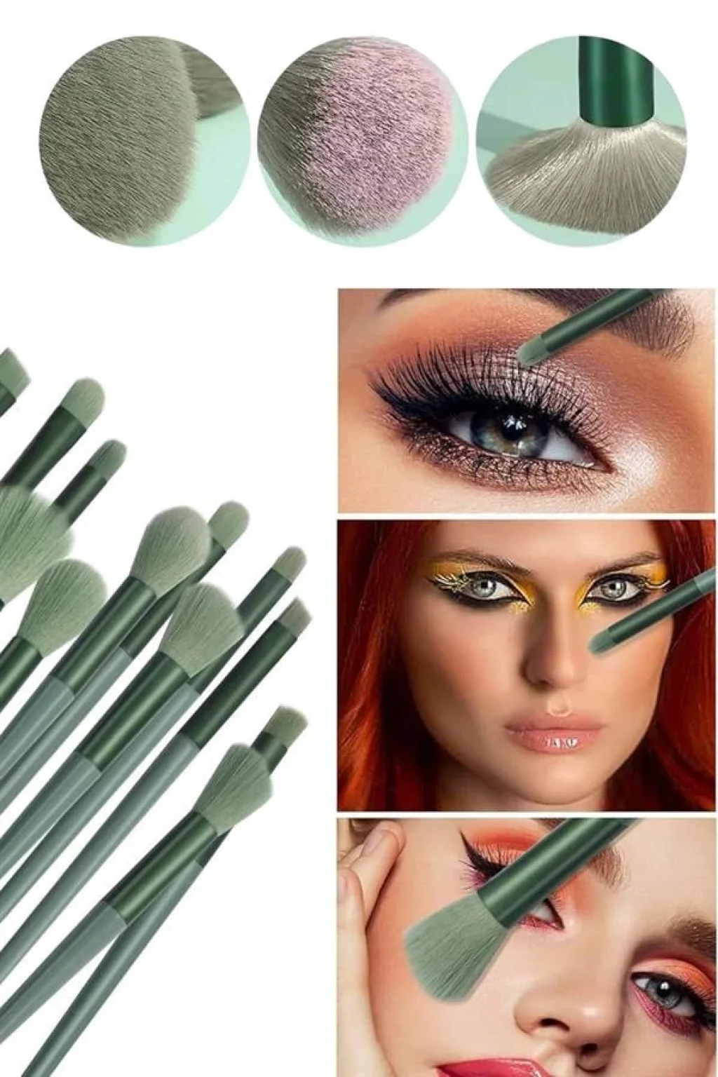 Makyaj Fırça Seti Yeşil 13 Parça Fondöten Fırçası Allık Fırçası Far Fırçası