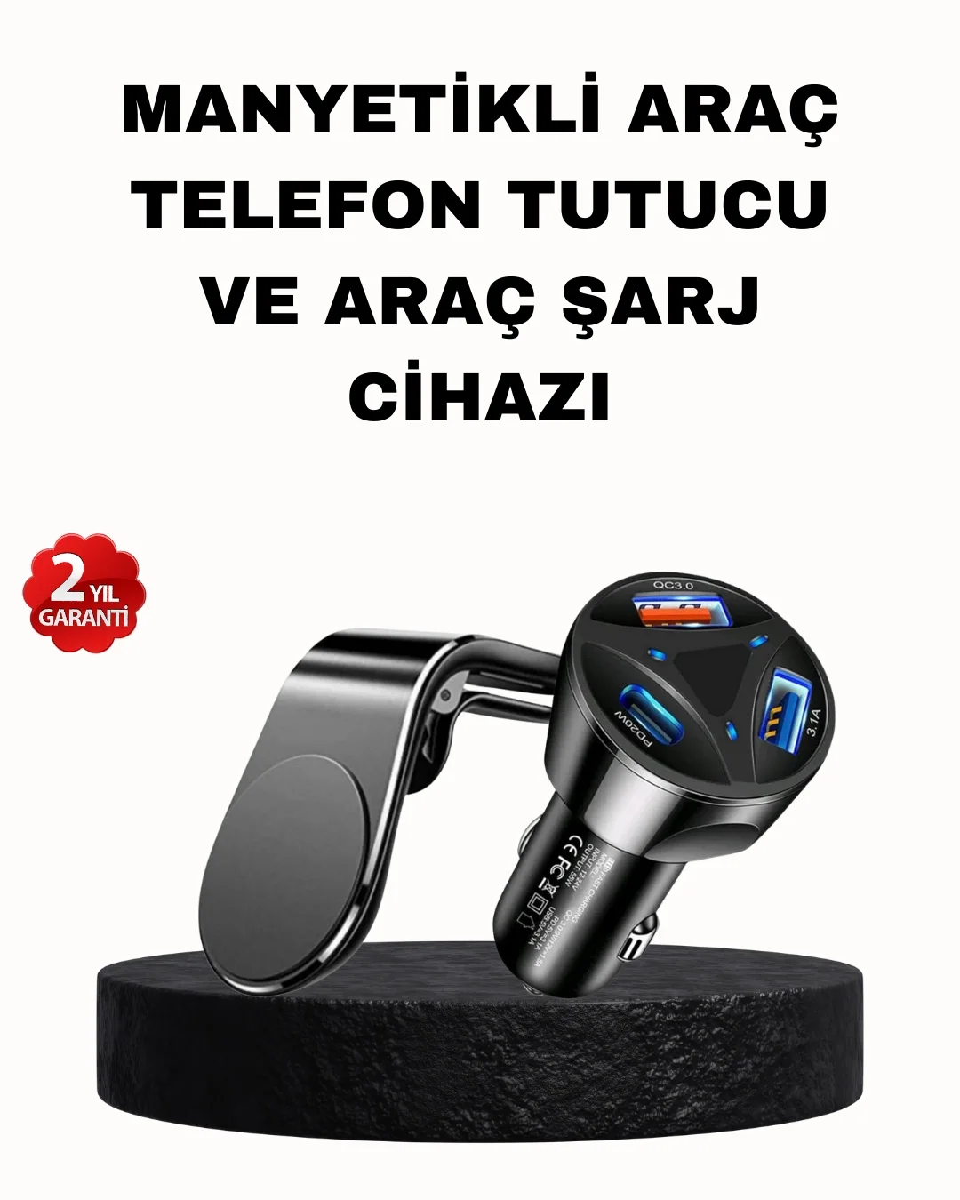 Bu 2’li araç aksesuar seti, sürüş sırasında hem güvenliği hem de konforu artırmak isteyen kullanıcılar için ideal bir çözümdür. Manyetik araç içi telefon tutucu, güçlü mıknatıs yapısı sayesinde telefonunuzu güvenli şekilde sabitler. Minimalist ve şık tasarımı, araç içi dekorla uyum sağlar. 360° döner mekanizması sayesinde telefonunuzu istediğiniz açıya ayarlayabilir, navigasyon kullanımını daha rahat ve güvenli hale getirebilirsiniz.Set içerisinde yer alan Quick Charge 3.0 destekli araç şarj adaptörü ise 55W toplam çıkış gücü ile aynı anda birden fazla cihazı hızlı ve güvenli şekilde şarj etmenizi sağlar. Akıllı IC teknolojisi sayesinde cihazınızı tanır ve ideal güçte şarj sunar. Günlük kullanım ve uzun yolculuklar için pratik bir settir.