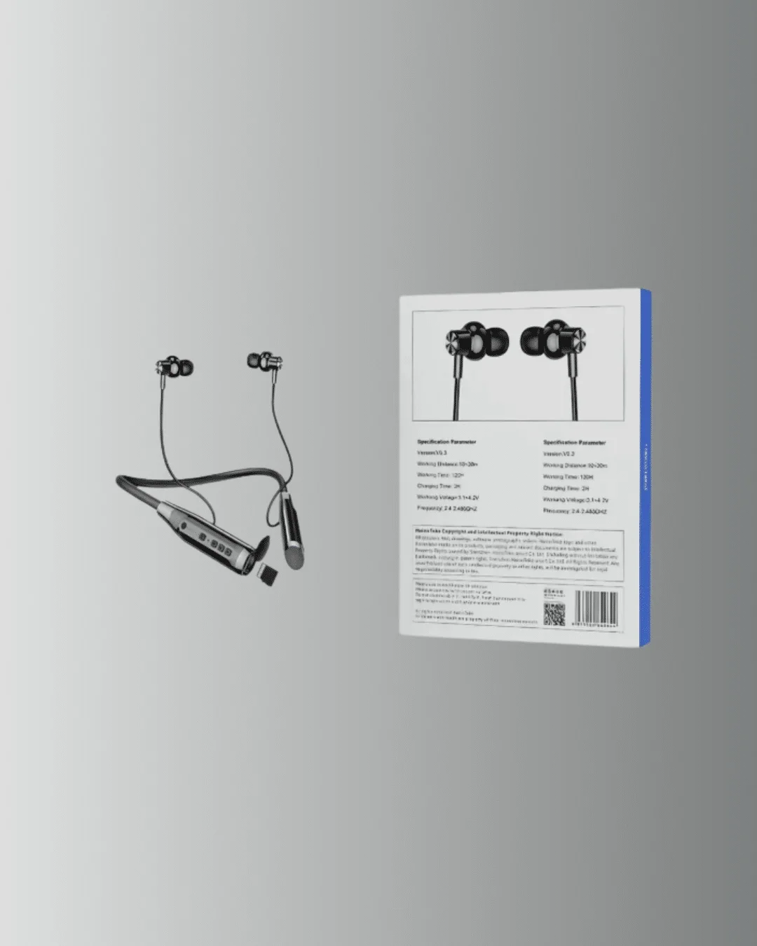 Manyetik başlıklar sayesinde şık bir şekilde boynunuzda taşıyabileceğiniz bu Bluetooth kulaklık, yüksek ses kalitesi ve 120 saat pil ömrü ile ideal bir günlük yardımcıdır. Hafifliği ve uzun şarj süresiyle seyahatlerde, sporda veya ofiste size eşlik eder.