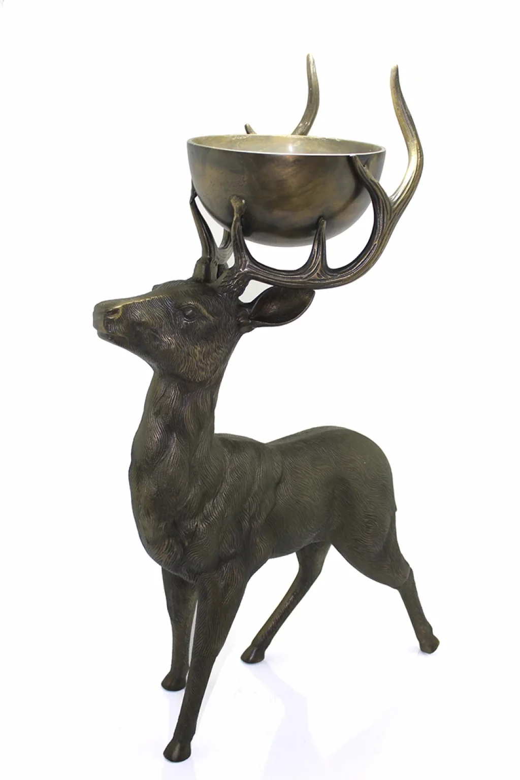 METAL GEYİKLİ KASE 77 CMÜrün ÖzellikleriŞık ve zarif tasarımıyla dikkat çeken Metal Geyikli Kase, dekorasyonunuza asil bir dokunuş katıyor. 77 cm boyutuyla göz alıcı bir duruş sergileyen bu ürün, kaliteli metal malzemeden üretilmiş olup uzun ömürlü bir kullanım sunar. Geyik figürünün üzerine yerleştirilen kase, şekerlik, meyvelik veya dekoratif bir obje olarak kullanılabilir. Antik görünümlü tasarımı ve detaylı işçiliğiyle her mekana uyum sağlar. Ev, ofis, otel veya restoran dekorasyonunda lüks bir atmosfer oluşturmak isteyenler için mükemmel bir seçimdir.Paket İçeriği1 Adet Metal Geyikli Kase (77 cm)