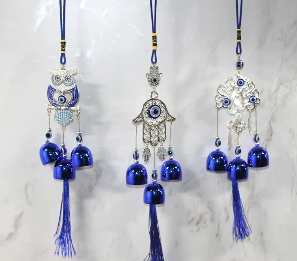 METAL NAZAR BONCUĞU ÇAN MODEL 6Ürün ÖzellikleriMetal Nazar Boncuğu Çan Model 6, geleneksel nazar boncuğu motifleri ve zarif metal çan detaylarıyla ev dekorasyonunuzu tamamlayan mistik bir aksesuardır. Nazar boncuğunun kötü enerjileri uzaklaştırdığına inanılırken, metal çanların çıkardığı huzur verici ses ortamınıza sakinlik katar. Kapı, pencere veya duvara kolayca asılabilen bu dekoratif ürün, dayanıklı metal malzemesi sayesinde uzun ömürlü kullanım sunar. Hem iç mekan hem de bahçe süslemesi için idealdir.Paket İçeriği1 Adet Metal Nazar Boncuğu Çan