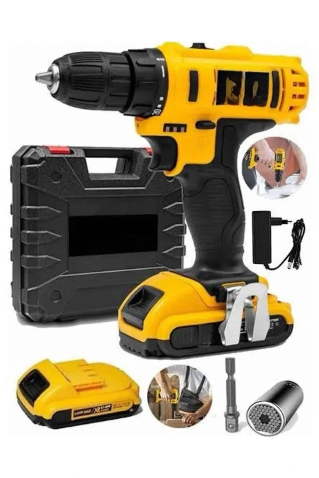 Metal Şanzıman Çift Akülü Bakır Sargı 24 Parça Led Aydınlatmalı Matkap Seti