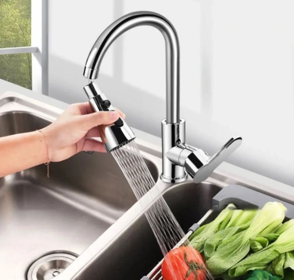 METALİK MUSLUK BAŞLIĞI 3 FONKSİYONMusluğunuza Fonksiyonel Güç KatınMetalik Musluk Başlığı, mutfağınızdaki su kullanımını optimize eden 3 fonksiyonlu tasarımıyla pratik bir çözüm sunar. Günlük kullanım için nazik bir su akışı sağlayan bu başlık, temizlik işleri için orta basınçlı bir akış sunarken, yüksek basınçlı su akışıyla bulaşık yıkamak veya zorlu lekeleri çıkarmak için idealdir. 720° dönebilen bağımsız dönme ekseni, lavabonuzun her köşesini zahmetsizce temizlemenize olanak tanır. Bu musluk başlığı, hem işlevselliği hem de dayanıklılığıyla mutfakta su kullanımı deneyiminizi en üst seviyeye taşır.