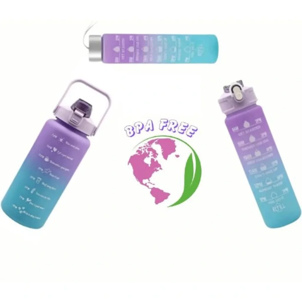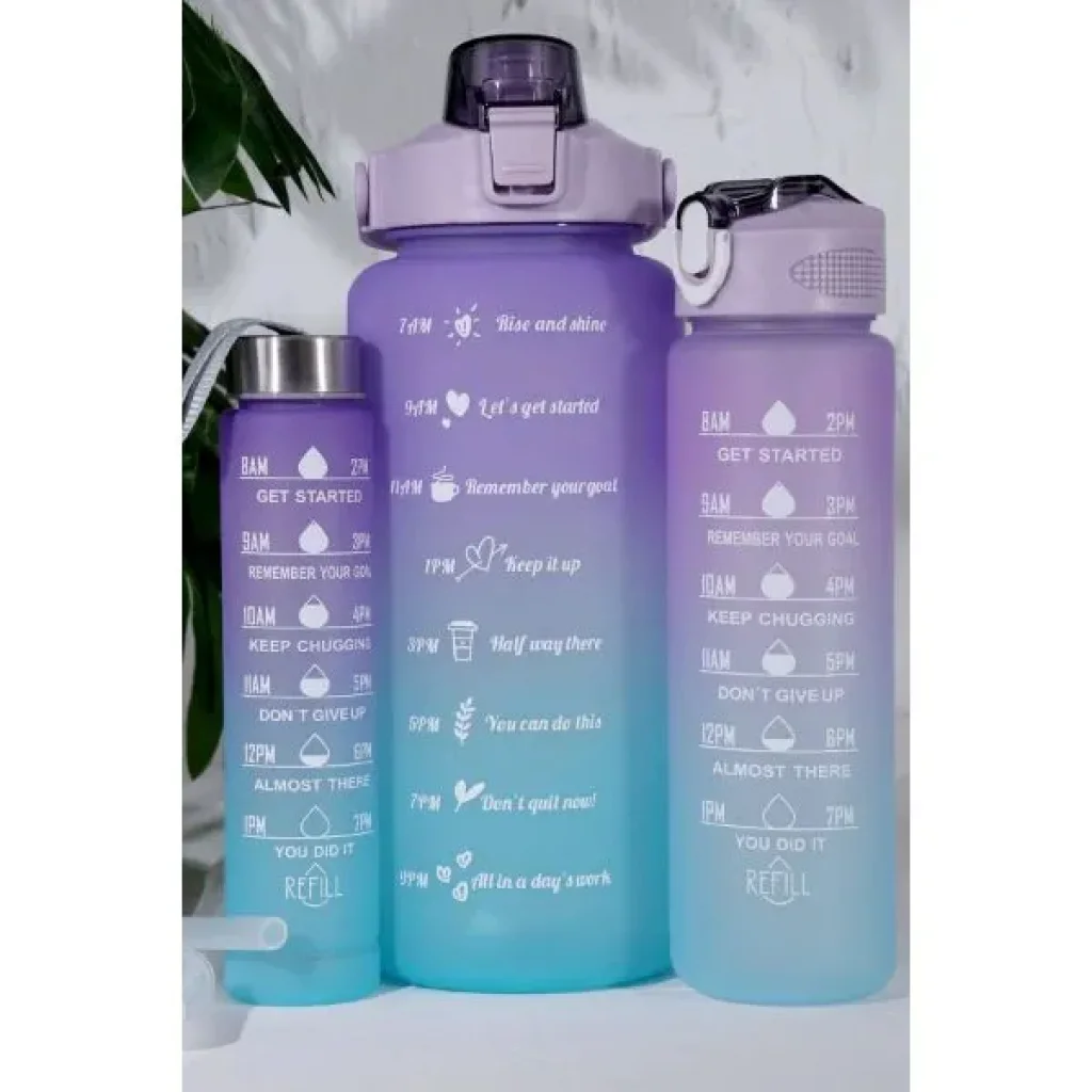 MOTİVASYON SULUK SETİÜrün ÖzellikleriSağlıklı Tritan malzemeden üretilmiştir.BPA, Fitalat ve toksit madde içermez, koku yapmaz, çocukların ve yetişkinlerin sağlığı için kesinlikle güvenlidir.BPA ve toksin içermez, son derece dayanıklı ve BPA içermeyez Lütfen bulaşık makinesinde veya sıcak su ile yıkamayınız..Kapağı 2 kademeli açılmaktadır, kapağı sonuna kadar ittirin, kapak sabitlenecektir.Böylelikle suyunuzu daha rahat içebilirsiniz.2.000 ML - 750 ML- 300 ML 3 lü set motivasyonel zaman çizelgeli su matarası bir günlük su ihtiyacınızın tamamını karşılar.Ilham verici alıntılar ve net zaman işaretçisi ile bu su matarası günlük su alımını izlemek ve gün boyunca su tüketimini teşvik etmek için harikadır.Birbirinden farklı canlı renk tasarımlarıyla yalnızca kendiniz için değil, aynı zamanda sevdikleriniz için güzel bir hediyedir.Bu uzun ömürlü su matarası sayesinde günlük pet şişe kullanımınızı azaltabilirsiniz.2.000 ML - 750 ML- 300 ML 3 lü set su matarası, suyunuzu günde birçok kez yeniden doldurmak zorunda kalma sorununu çözer.tasarımı sayesinde su akıtmaz akıntı yapmaz, farklı kullanım seçenekleri ile pipetli veya pipetsiz olarak kullanılabilir, özel sapı ile her yere kolaylıkla taşınabilir.Paket İçeriği3 lü motivasyon suluk seti