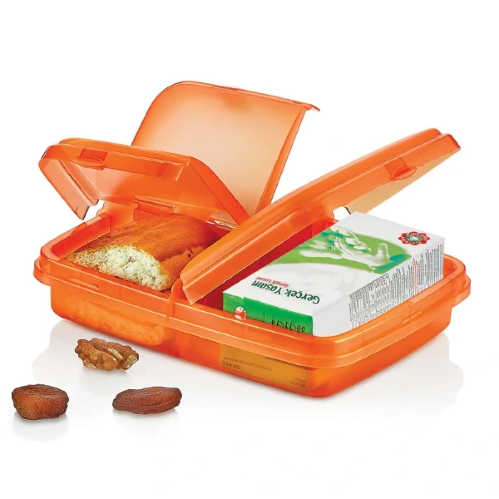 NATÜREL BESLENME KABIÜrün ÖzellikleriBu 3 bölmeli plastik beslenme kabı, sağlığa zararlı olmayan, gıda ile temasa uygun kaliteli plastikten üretilmiştir. Öğle yemeklerinizi, atıştırmalıklarınızı ve daha fazlasını düzenli ve taze bir şekilde taşımak için ideal bir seçenektir. Her bir bölme, farklı yiyecekleri güvenle ayırarak taşımaya yardımcı olur. Uzun ömürlü yapısı sayesinde günlük kullanımda dayanıklıdır ve ergonomik tasarımı ile taşıması son derece kolaydır.Paket İçeriği1 Adet Naturel Beslenme Kabı