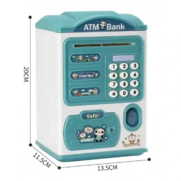 ChatGPT:PARMAK İZİ VE ŞİFRELİ ELEKTRONİK ATM KUMBARAÜrün ÖzellikleriParmak izi ve şifreli elektronik ATM kumbara, çocuklara tasarruf bilincini eğlenceli bir şekilde kazandırmak için tasarlanmış yenilikçi bir üründür. 20 cm yüksekliğinde, 13.5 cm genişliğinde ve 11.5 cm derinliğinde kompakt yapısıyla masa, raf veya komodin üzerinde kolayca kullanılabilir. Şifreli giriş sistemi ve parmak izi doğrulama özelliğiyle güvenli bir şekilde açılır. Başlangıç şifresi “0000” olarak ayarlanmıştır, kullanıcı dilediğinde yeni bir şifre belirleyebilir. Para ve madeni bozukluklar için ayrı giriş yuvaları bulunur; kağıt para girişine yaklaştırıldığında otomatik olarak içeri çekilir. Renk seçimi yapılamaz, görsellerdeki renklerden karışık olarak gönderilmektedir. Dayanıklı plastik gövdesi uzun süreli kullanım sağlar ve çocuklar için güvenlidir.Paket İçeriği1 adet Parmak İzi ve Şifreli Elektronik ATM Kumbara1 adet parmak izi ve şifreli elektronik ATM kumbara