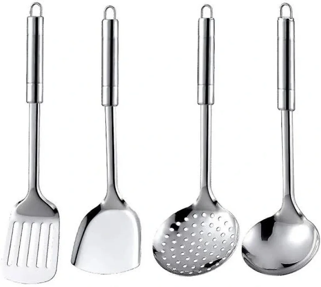 PASLANMAZ ÇELİK MUTFAK SETİPaslanmaz çelikten üretilen bu mutfak seti, dayanıklılık ve şıklığı bir araya getirerek mutfakta çeşitli işlemleri kolaylaştırır. Set, beş ana parçadan oluşur:Paslanmaz Stand: Fonksiyonel ve sağlam bir temel sunarak diğer mutfak araçlarını düzenli bir şekilde saklar. Mutfak tezgahınızda düzeni sağlamak için idealdir.Kepçeler (2 Parça): İki farklı boyutta tasarlanmış kepçeler, yemek pişirme veya servis yapma işlemlerinizde size esneklik sunar. Paslanmaz çelik malzeme, dayanıklılık ve hijyen sağlar.Spatula: Geniş ve düz yapısı ile kızartma, döndürme veya karıştırma işlemlerinde kullanılabilir. Paslanmaz çelik yapısı, uzun ömürlü ve güvenilir bir kullanım sunar.Kevgir: Pratik bir kullanım sunan kevgir, çorba, makarna veya diğer yemekleri süzmek için idealdir. Paslanmaz çelik malzeme, temizliği kolaylaştırır.Bu paslanmaz çelik mutfak seti, mutfakta çeşitli görevler için gereken temel araçları bir araya getirerek kullanıcıya pratiklik ve dayanıklılık sağlar.Paket İçeriği1 adet paslanmaz çelik mutfak seti