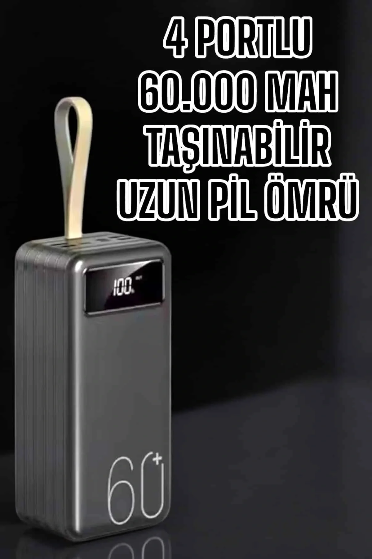 Powerbank 60.000 Mah Hızlı Şarj 4 Çıkışlı Uzun Şarj Süreli Dijital Göstergeli