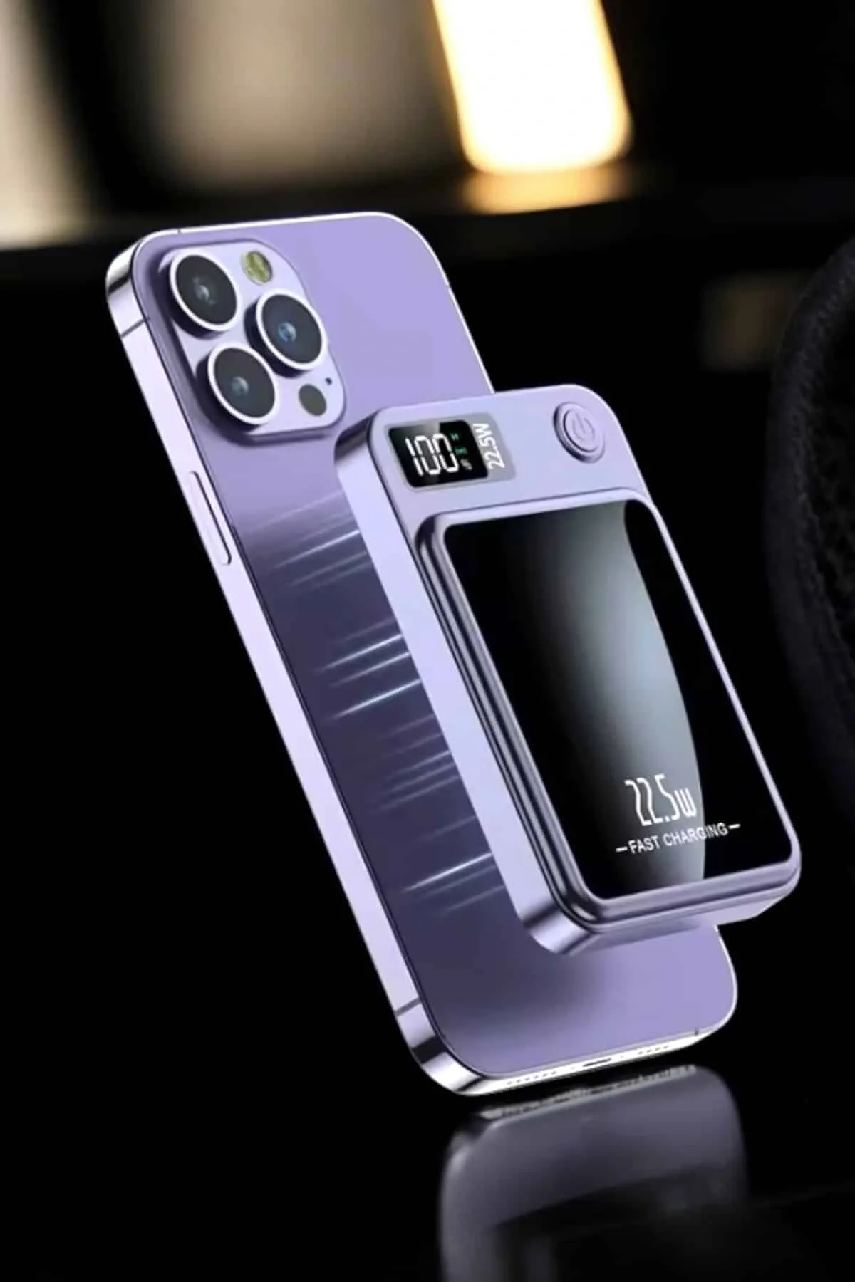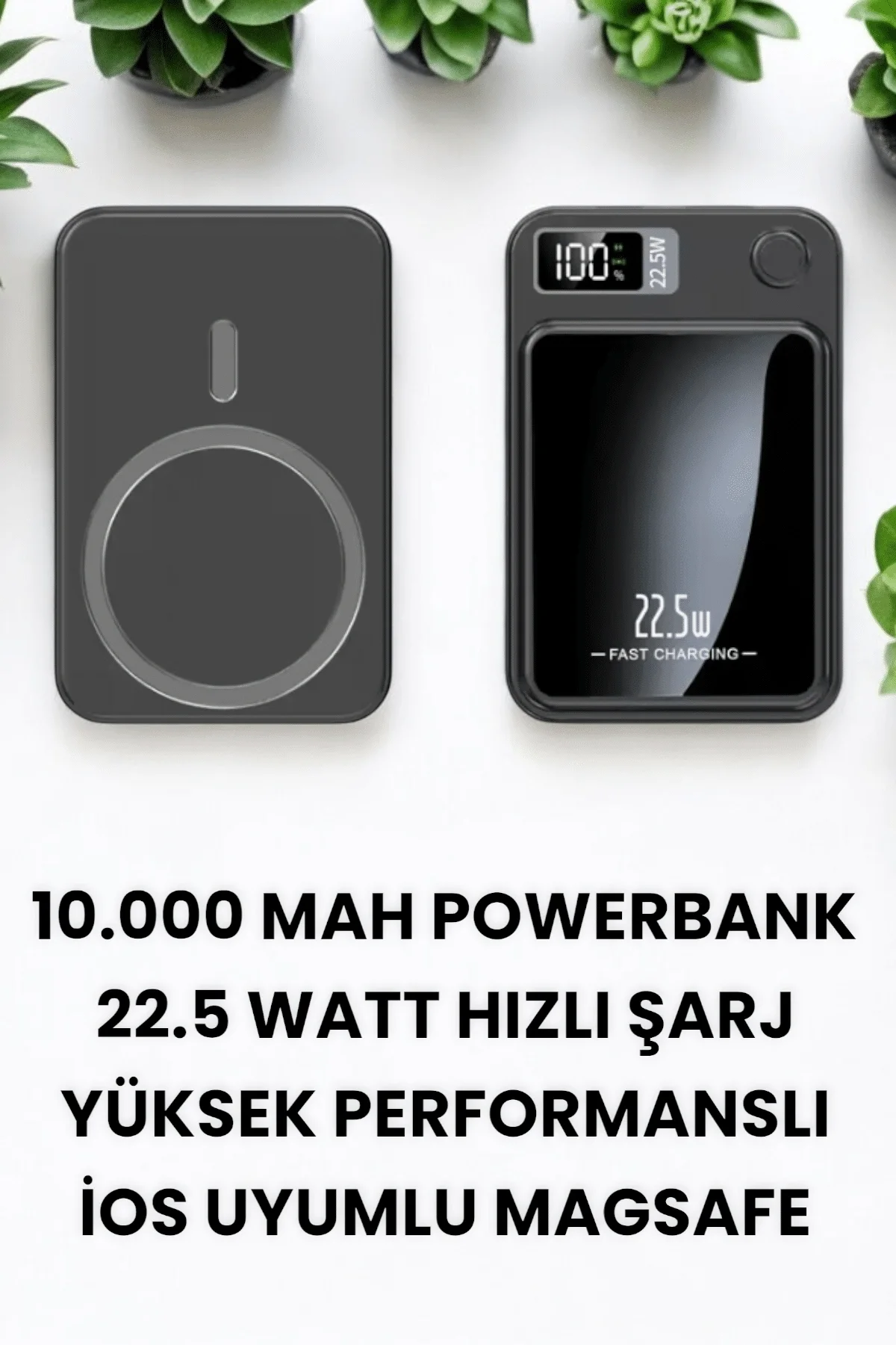 Kompakt, Hızlı ve Kablosuz Şarj Deneyimi!Magsafe destekli bu 10.000 mAh taşınabilir powerbank, kablosuz şarj özelliği ve 22.5W hızlı şarj gücü ile cihazlarınızı anında enerjiyle buluşturur. Dijital ekranı sayesinde pil durumunu anlık olarak takip edebilirsiniz. Şık tasarımı ve pratik yapısıyla çantanızda veya cebinizde kolayca taşınabilir, günlük kullanımda hayatınızı kolaylaştırır.