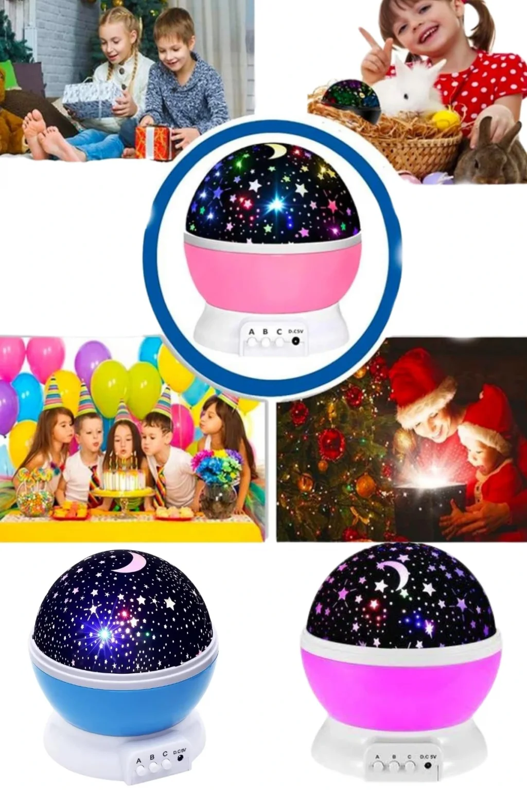 Renkli Yıldızlı Gökyüzü Projeksiyon Gece Lambası Pilli ve USB Kablolu