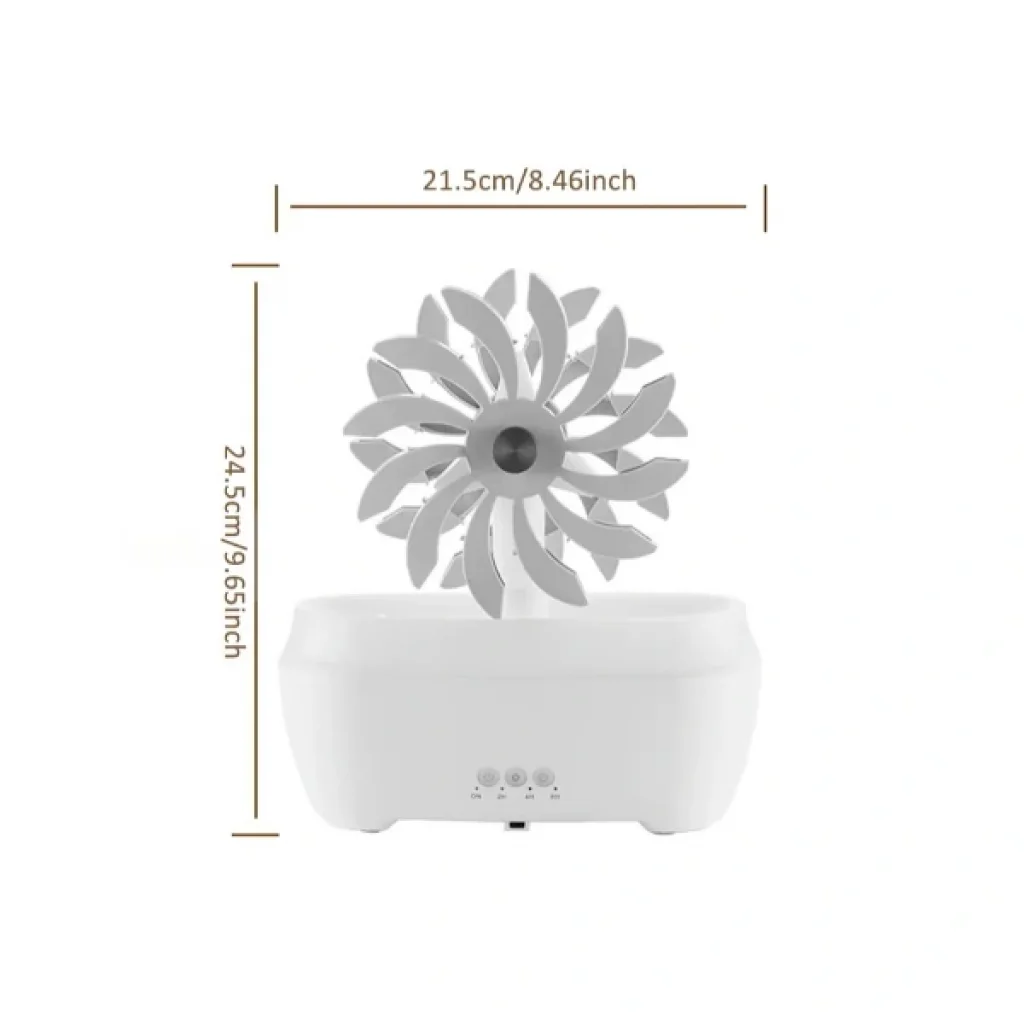 RÜZGAR DEĞİRMENİ HAVA NEMLENDİRİCİÜrün ÖzellikleriRüzgar değirmeni tasarımlı hava nemlendirici 300 ml su haznesiyle ortama ideal nem dengesini sağlar. Uzaktan kumandası sayesinde kolayca kontrol edilebilir ve RGB ışık fonksiyonlarıyla farklı renklerde hoş bir ambiyans yaratır. Aromatik yağlarla kullanılabilen cihaz, bulunduğu ortama ferahlık ve hoş koku katar. Üst kısmındaki dekoratif değirmen yavaşça hareket ederek görsel bir şıklık sunar. Sessiz çalışmasıyla uyku sırasında veya çalışma ortamında rahatsızlık vermez, aynı zamanda dekoratif tasarımıyla ev ve ofislerde modern bir görünüm sağlar.Paket İçeriği1 adet Rüzgar Değirmeni Hava Nemlendirici