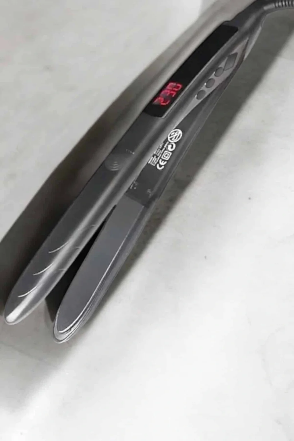 Isı Ayarlı Saç Düzleştirici, yenilikçi teknolojilerle donatılmış ergonomik tasarımı ile saç stiliniz üzerinde tam kontrol sağlar. Hassas ayarlamalar yaparak her türlü saç tipi için en iyi sonucu elde edin.Titanyum ve Seramik UyumuTitanyum kaplı seramik plakalar, saçınıza zarar vermeden mükemmel bir kayganlık sunar. Isıyı eşit bir şekilde dağıtarak her saç telinin aynı derecede düzleşmesini sağlar.Sıcaklık Gösterge EkranıDijital ekran, seçilen sıcaklık seviyesini net bir şekilde gösterir. Bu, doğru sıcaklık seçimi yaparak saçlarınıza hassas bir dokunuş yapmanıza olanak tanır.Nem Koruma SensörüNem koruma sensörü, saçın doğal nemini koruyarak, ısı hasarını minimum seviyeye indirir. Böylece saçlarınız daha sağlıklı ve parlak görünür.Ergonomik ve Şık TasarımUzun süreli kullanımlar için tasarlanmış ergonomik yapısı, konforlu bir kullanım deneyimi sunar. Şık ve modern tasarımı ile de göz doldurur.Kapsamlı Kullanım Avantajları Farklı saç tiplerine uygun geniş sıcaklık ayarları 2.5 metre uzunluğunda hareket özgürlüğü sunan kablo 360° dönebilen kordon sayesinde esnek kullanım Güvenli saklama için kilitleme mekanizması Taşınabilir yapısıyla her an yanınızda bulundurabileceğiniz bir yardımcıHer gün salon kalitesinde saçlara sahip olmak için Isı Ayarlı Saç Düzleştirici, hem pratikliği hem de performansıyla sizin için ideal bir seçim.