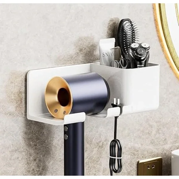 SAÇ KURUTMA MAKİNESİ VE EŞYA DÜZENLEYİCİ BEYAZ RENKÜrün ÖzellikleriDuvara monte edilebilir saç kurutma makinesi ve eşya düzenleyici, hem işlevsellik hem de şıklığı bir araya getirerek banyolarda düzen ve kolaylık sağlar. Saç kurutma makinesi tutacağı, kurutma makinesini güvenli bir şekilde tutarak yerden tasarruf etmenize ve banyoda düzenli bir görünüm oluşturmanıza yardımcı olur. Tıraş makineleri, diş fırçaları ve tüp şeklindeki kremler gibi günlük bakım ürünlerinizi saklamak için ek bir eşya saklama alanı sunar. Modern ve minimalist tasarımı, banyo dekorasyonunuzu tamamlayan estetik bir görünüm sağlar. Plastik ve metal kombinasyonundan oluşan dayanıklı malzemesi sayesinde uzun ömürlüdür ve sağlam bir yapıya sahiptir. Duvara kolayca monte edilebilmesi, ürünü pratik bir kullanım çözümü haline getirir. Bu düzenleyici, banyoda hem alan yönetimini kolaylaştırır hem de hijyenik bir düzen oluşturur. Ürün beyaz renklidir.Paket İçeriği1 adet saç kurutma makinesi ve eşya düzenleyici aparat.