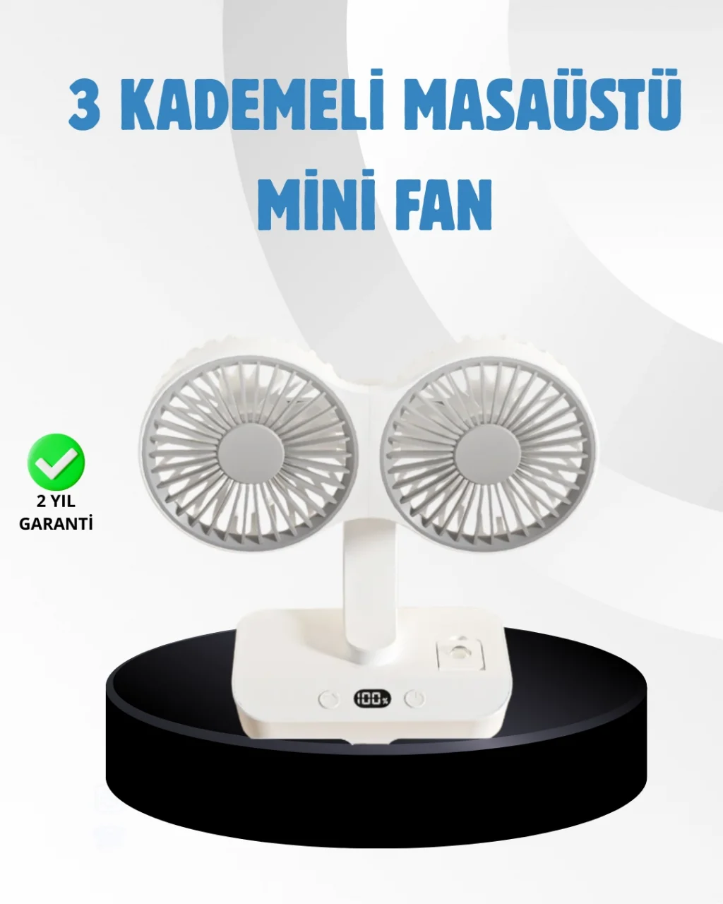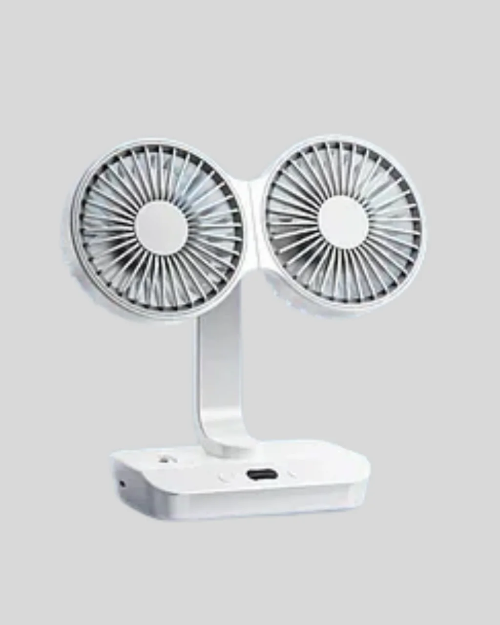Evde, ofiste veya yatak odasında sessiz ve güçlü serinlik isteyenler için ideal bir seçenektir. USB şarj özelliği ile taşınabilir kullanım imkanı sunar ve priz arama sorununu ortadan kaldırır. Çift başlıklı tasarımı sayesinde hava akışı geniş alanlara yayılır, bu da birden fazla kişinin aynı anda serinlemesini sağlar. 6 kanatlı pervane sistemi, havayı daha etkili ve hızlı bir şekilde hareket ettirir. 720° dönebilen salınım özelliği sayesinde odanın her köşesine eşit serinlik ulaştırır. Sessiz motor teknolojisiyle yalnızca 36 dB gürültü seviyesinde çalışır. Bu sayede gece uyurken veya çalışırken rahatsızlık vermez. Uzatılmış pil ömrü ile daha uzun süreli kullanım sunar. Masaüstü kullanımın yanı sıra duvara monte edilebilen kancaları ile çok yönlü bir deneyim sağlar. Modern tasarımıyla her ortamda şıklığı ve işlevselliği bir arada sunar.
