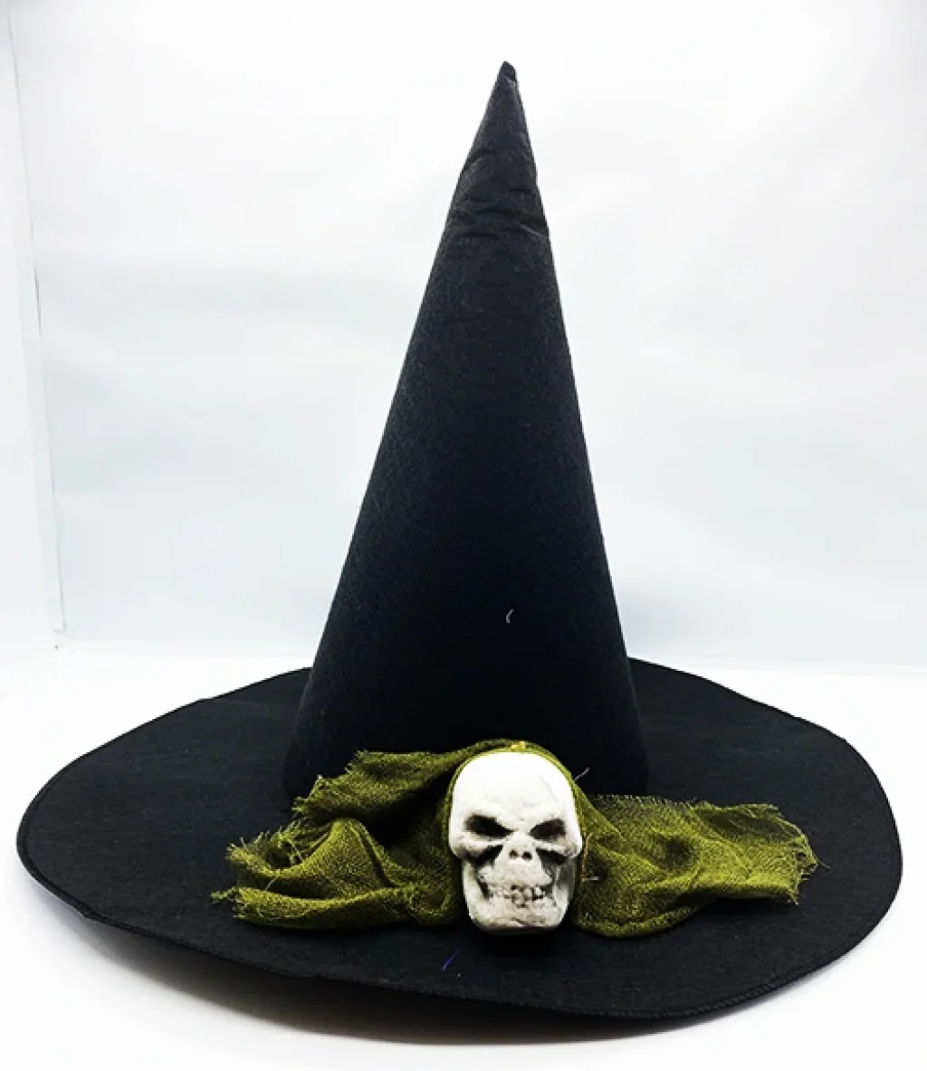 SİYAH RENK YEŞİL DUVAKLI KURU KAFA TEMALI CADI ŞAPKASI 35X38 CMÜrün ÖzellikleriSiyah renkli, yeşil duvaklı kuru kafa temalı cadı şapkası, cadılar bayramı ve kostüm partileri için mükemmel bir aksesuardır. Şapkanın ön kısmındaki kuru kafa deseni, kostümünüze karanlık ve gizemli bir hava katarken, yeşil duvak şıklık ve zarafet sunar. 35x38 cm boyutundaki şapka, her bedene uyum sağlayacak şekilde tasarlanmıştır ve rahat bir kullanım sunar.Paket İçeriği1 Adet Siyah Renk Yeşil Duvaklı Kuru Kafa Temalı Cadı Şapkası