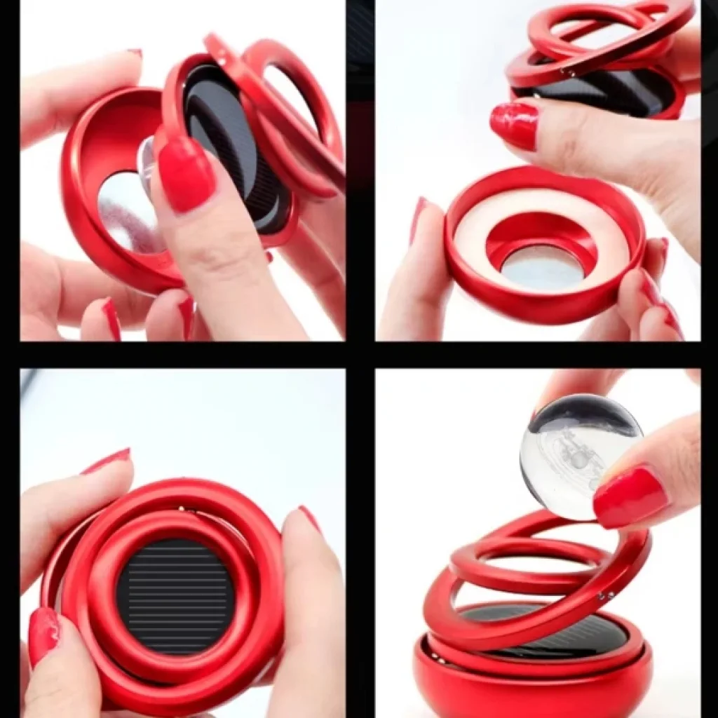 SOLAR 360° DÖNEN ARABA KOKUSUÜrün ÖzellikleriSolar 360° Dönen Araba Kokusu, hem görselliği hem de işlevselliğiyle dikkat çeker. Üst kısmında yer alan şeffaf kristal küre içerisinde 3D galaksi veya gezegen tasarımı yer alır. Ortam ışığıyla birlikte şık bir görünüm sunar. Küre etrafında dönebilen iki halka bulunur. Bu halkalar, dekoratif olarak tasarlanmış olup ürünün estetik değerini artırır. İç kısmına yerleştirilen aroma tableti veya sıvı esans sayesinde aracın içinde ferah bir koku yayılmasını sağlar. Güneş enerjisi sayesinde hareket ettiğinde kokunun daha hızlı dağılmasını sağlar. Hem evde masa üstünde dekoratif amaçla hem de araç içi parfüm olarak kullanılabilir. Kırmızı, siyah, altın, gümüş ve mavi gibi farklı metalik renklerde sunulur ve stok durumuna göre karışık gönderilir. Paket İçeriği1 Adet Solar 360° Dönen Araba Kokusu