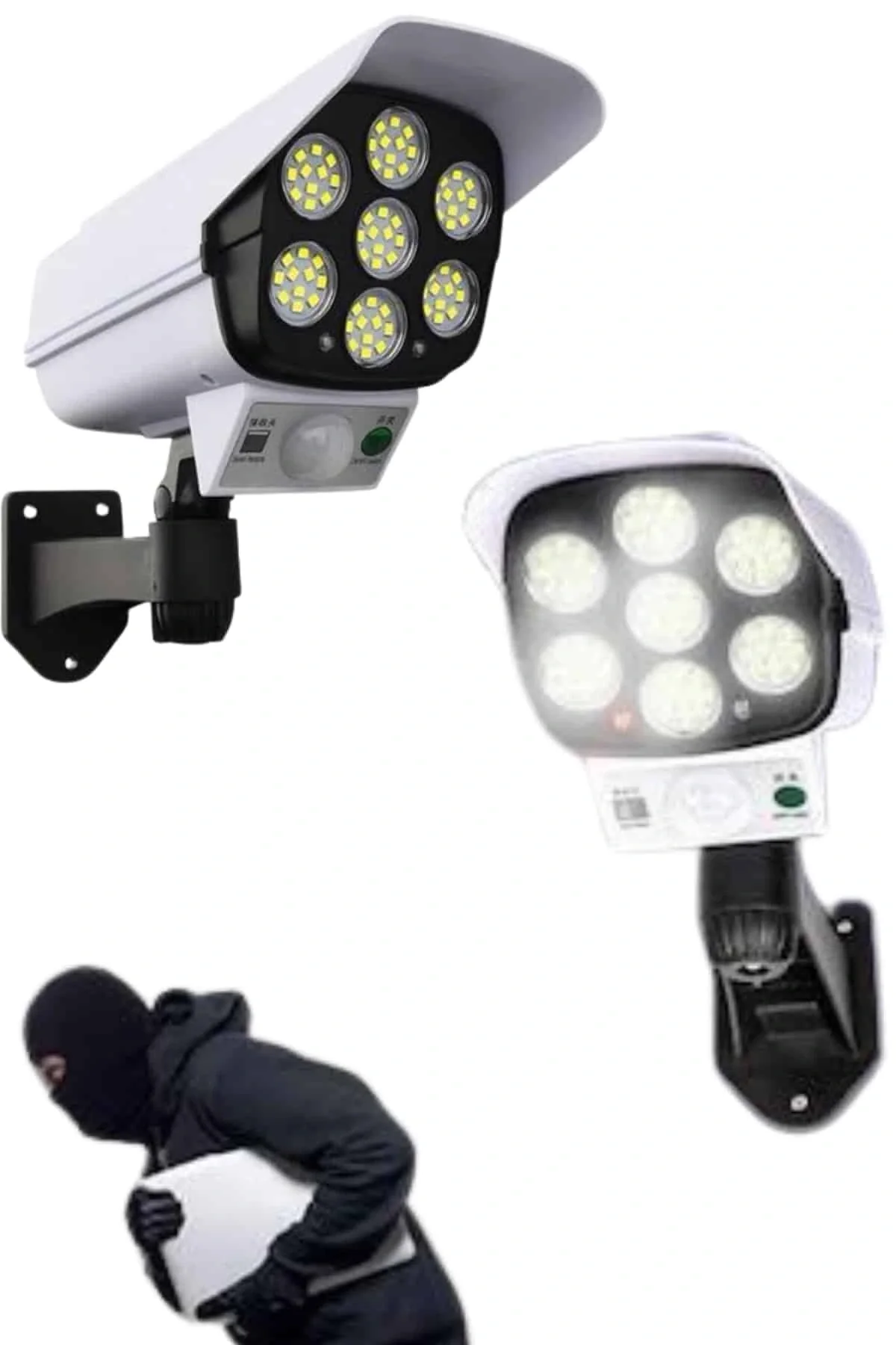 Bu güneş enerjili LED güvenlik lambası, dış mekanlarınızda hem güvenlik hem de aydınlatma ihtiyacınızı karşılayan mükemmel bir çözümdür. Yüksek verimli LED ışıkları, çevrenize güçlü bir ışık yayarak karanlık ortamlarda güvenliğinizi artırır. Gündüz güneş enerjisini depolayan polikristal silikon paneli, gece ise hareket algılandığında devreye girer ve otomatik olarak ışık yayar. Hareket sensörü, 120° algılama açısıyla 5-8 metre mesafeden hareketi tespit ederek yalnızca ihtiyaç duyulduğunda ışık sağlar. Bu sayede hem enerji tasarrufu sağlanır hem de çevreniz ışıkla donatılır.Kamera görünümüne sahip şık tasarımı, bahçenizde veya garajınızda güvenlik hissiyatı yaratırken, IP65 su geçirmez özelliği sayesinde her türlü hava koşulunda dayanıklıdır. Yağmur, kar veya şiddetli rüzgar gibi zorlu hava şartlarına karşı korumalıdır. Kumanda ile kontrol edilebilir olması, kullanım kolaylığı sağlar; açma, kapama veya ışık modlarını değiştirmek için uzaktan kumanda kullanabilirsiniz. Kablolu bağlantı gerektirmeyen bu ürün, duvar veya direk montajı ile rahatça kurulabilir. Dayanıklı ABS plastik ve alüminyum malzemeden üretilen ürün, uzun ömürlü ve çevre dostu bir çözüm sunar. Hem pratik hem de estetik bir güvenlik çözümü arayanlar için mükemmel bir tercihtir.