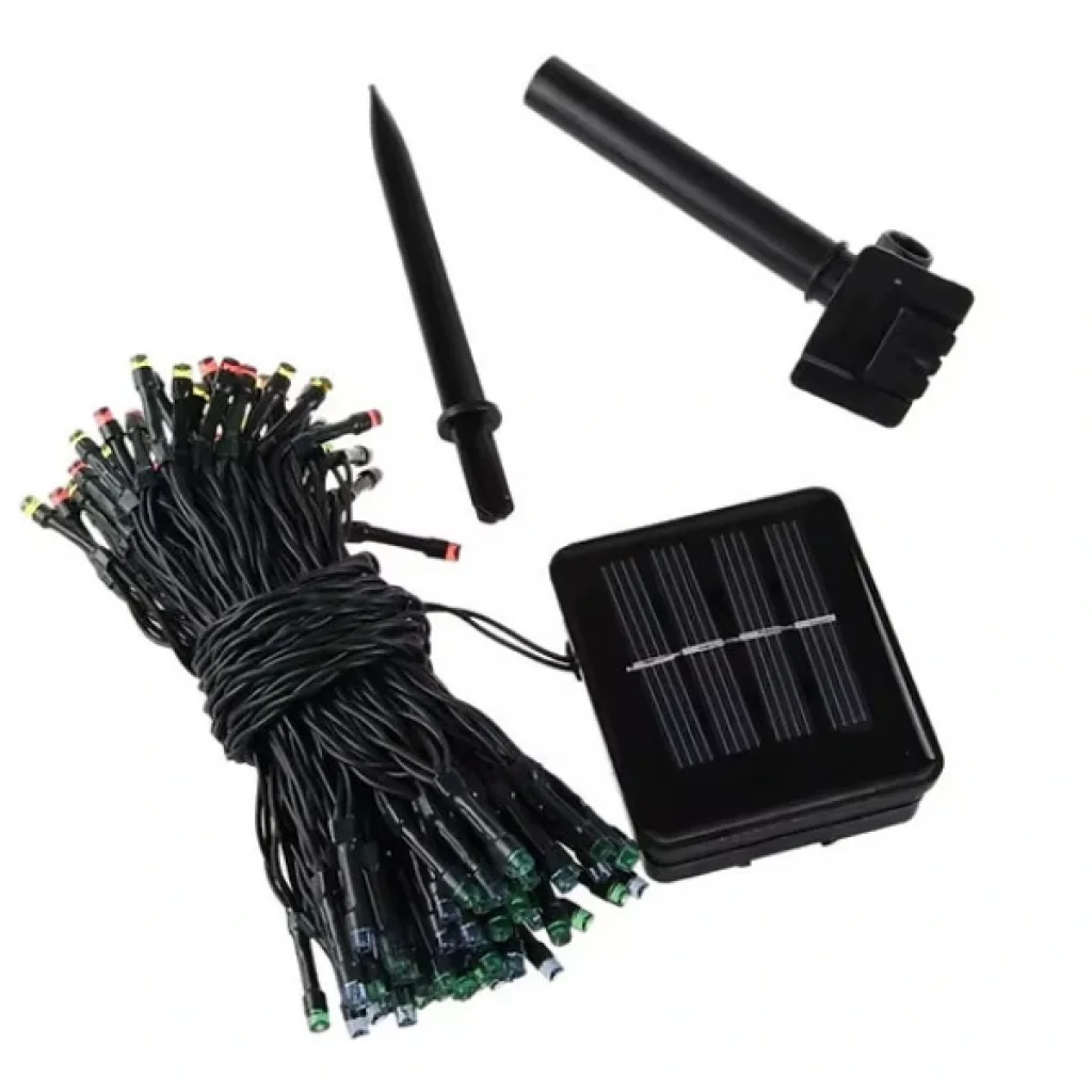 SOLAR SİYAH KABLO BAHÇE AYDINLATMASIÜrün ÖzellikleriSolar siyah kablo bahçe aydınlatması, dış mekânlarda dekoratif ve ekonomik bir aydınlatma çözümü sunar. Güneş paneli sayesinde gündüzleri 4-8 saat arasında şarj olur ve tam dolu şarjla 6-10 saat kesintisiz aydınlatma sağlar. Panelin arkasında yer alan açma-kapama düğmesi ile kullanım kolaylığı sunarken, "Mode" düğmesi sayesinde farklı ışık modları arasında geçiş yapılabilir. IP65 koruması ile su geçirmez ve gönül rahatlığıyla dış mekanlarda kullanılabilir. Bahçeler, teraslar, balkonlar ve yürüyüş yolları için ideal olan bu ürün, enerji tasarruflu yapısı ile uzun süreli kullanım imkânı sağlar. Siyah kablosu sayesinde dekoratif kullanımda sade ve şık bir görünüm sunar.Paket İçeriği1 adet Solar Siyah Kablo Bahçe Aydınlatması