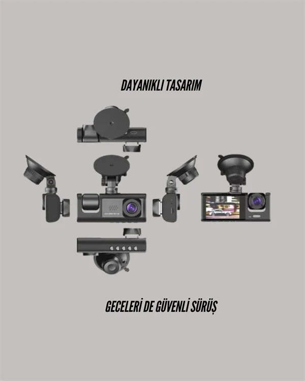 TA-01, sürüş güvenliğini en üst seviyeye taşımak isteyen kullanıcılar için geliştirilmiş, çok yönlü bir araç içi kamera sistemidir. Ön, iç ve arka olmak üzere 3 ayrı kamera ile aracınızın her açısını eksiksiz bir şekilde kayıt altına alır.Ön kamera 1080P Full HD, iç ve arka kameralar ise 720P HD çözünürlükle çalışır. Bu sayede yalnızca trafikteki anları değil, yolcuların hareketlerini ve arka görüşü de net şekilde kaydedebilirsiniz.Kameraların sunduğu 170° geniş görüş açısı, daha fazla alanı kapsar, kör nokta riskini azaltır ve her yönden gelebilecek tehlikelere karşı kapsamlı bir güvenlik sağlar.Gece görüş özelliği, düşük ışıklı ve karanlık ortamlarda bile görüntü netliğini koruyarak gece sürüşlerini güvenli hale getirir.Cihazın sahip olduğu G-Sensör (ivmeölçer), ani frenleme, darbe veya çarpışma durumlarını otomatik olarak algılar ve o ana ait kayıtları otomatik olarak koruma altına alır. Böylece bu önemli görüntüler üzerine kayıt yapılmaz, kazaya dair delil olarak saklanabilir.Hareket algılama fonksiyonu, araç park halindeyken bile devrededir. Aracın çevresinde bir hareket algılandığında otomatik olarak kayıt başlatılır, böylece hırsızlık veya darbe gibi durumlar kayıt altına alınabilir.2.0 inç LCD ekran, kullanıcıya canlı görüntü izleme, kayıtları oynatma ve ayarları kolayca yapma imkânı sunar. Menü yapısı sade ve kullanıcı dostudur.TF kart (Micro SD) desteği sayesinde cihaz 32 GB’a kadar kayıt kapasitesi sağlar. Bu sayede uzun süreli yolculuklar da dâhil olmak üzere geniş kayıt aralığı sunar (hafıza kartı pakete dahil değildir). Kayıtlar döngüsel şekilde gerçekleşir; hafıza dolduğunda en eski kayıtlar silinerek yenileri eklenir.Kompakt ve dayanıklı gövde yapısı, suya ve toza karşı dayanıklıdır, bu da cihazın uzun ömürlü ve dört mevsim kullanımına uygun olduğunu gösterir.Teknik Özellikler: Kamera Sayısı: 3 (Ön, İç, Arka) Ön Kamera: 1080P Full HD İç ve Arka Kameralar: 720P HD Görüntü Formatı: AVI Görüş Açısı: 170° Geniş Açı Ekran Boyutu: 2.0 inç LCD Gece Görüş: Var G-Sensör: Var Hareket Algılama: Var Depolama: 32 GB’a kadar TF Kart (Micro SD) – kart dahil değildir Bağlantı Noktası: USB Frekans: 50Hz / 60Hz Zaman Senkronizasyonu: Desteklenir Döngüsel Kayıt: Evet Otomatik Açma/Kapama: Evet (araç çalışınca başlar, durunca kapanır) Ağırlık: Hafif ve taşınabilir yapıTorima TA-01, hem günlük sürüşler hem de uzun yolculuklar için ideal, kullanıcı dostu ve yüksek güvenlik sağlayan profesyonel bir araç kameradır. Aracınızı hem hareket halindeyken hem de park halindeyken koruma altına alır. Tüm sürüş sürecinizi belgeler, olası kazalarda güvenilir delil sunar.