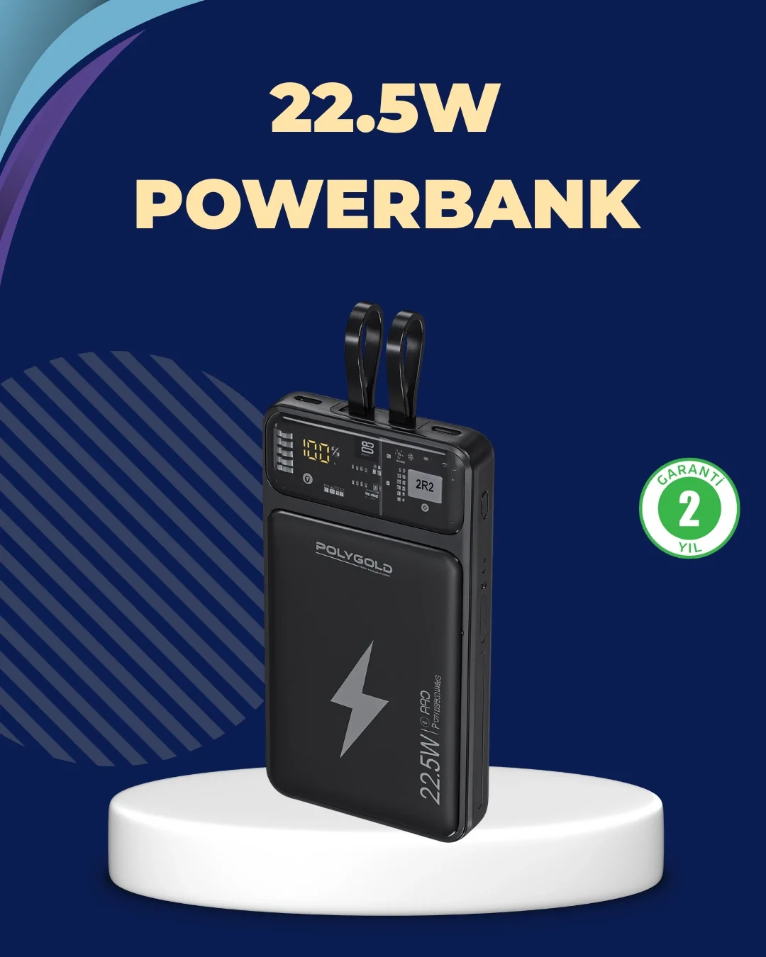 Polygold PG PW210 Powerbank, dahili kablo tasarımıyla öne çıkan pratik bir şarj çözümüdür. Çoğu powerbank modelinde yaşanan kablo taşıma zorunluluğu bu ürünle tamamen ortadan kalkar. Cihaz üzerinde gömülü iki adet kablo, hızlı kullanım kolaylığı sağlar. Böylece dışarıda, okulda, işte veya araçta ek bir kablo aramak zorunda kalmadan telefonunuzu anında şarj etmeye başlayabilirsiniz.10000 mAh kapasitesi ile birçok kullanıcı için günlük kullanımda fazlasıyla yeterli bir enerji sunar. Telefonunuzu marka ve modele bağlı olarak 2 ila 3 kez tamamen şarj edebilir. 22.5W hızlı şarj teknolojisi sayesinde cihazlarınızı klasik powerbanklere göre çok daha hızlı şarj eder. USB çıkışları, dahili kabloları ve PD destekli portları ile çoklu cihaz şarjını aynı anda mümkün hale getirir.Powerbank üzerinde yer alan net dijital ekran, şarj yüzdesini doğrulukla gösterir. Bu sayede powerbank’in ne kadar daha kullanım süresi kaldığını bilirsiniz. Kompakt tasarımı hem taşımayı kolaylaştırır hem de ürünün şık görünmesini sağlar. Polygold PG PW210, kullanıcı deneyimini artırmaya yönelik modern bir tasarım anlayışına sahiptir. Şık yüzeyi, dayanıklı gövdesi ve kaliteli işçiliği sayesinde uzun süreli kullanım vaat eder.Teknolojik cihazlarla sık zaman geçiren ve sürekli hareket halinde olan kullanıcılar için kullanım kolaylığı sunar. Özellikle yolculuk yapan, sosyal medya içerik üreten veya yoğun iletişim trafiği bulunan kullanıcılar için ideal bir çözümdür. Fonksiyonelliği ve taşınabilirliğiyle günlük hayatı önemli ölçüde kolaylaştıran bir üründür.