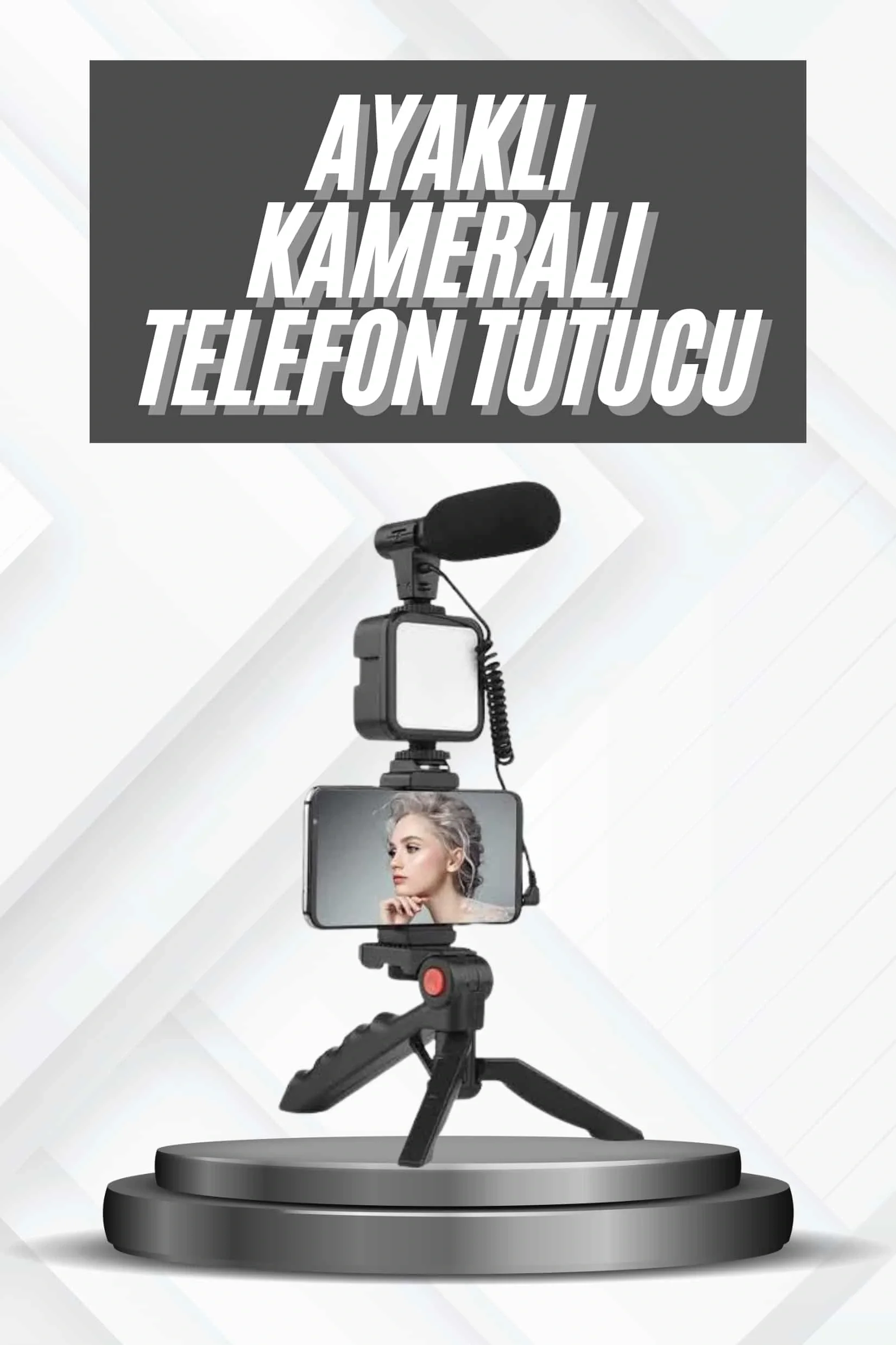 Telefon Tutucu Mikrofonlu Işıklı Youtuber Video Kayıt