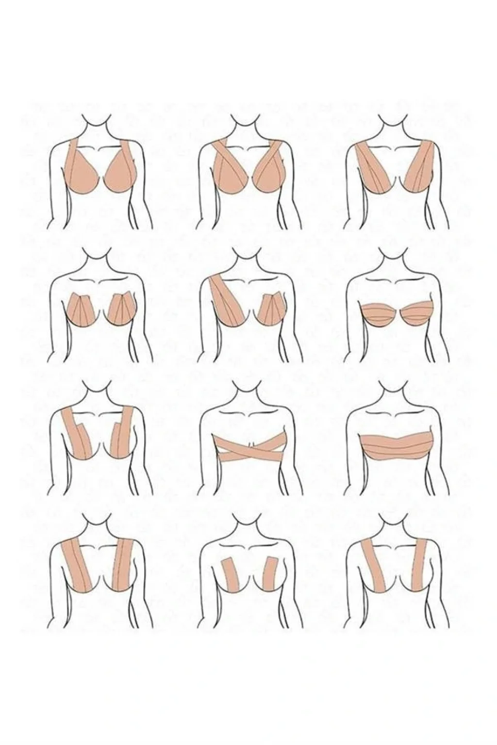 Görünmez Destekleyici Göğüs BandıGöğüslerinizi doğal bir şekilde desteklemek ve kaldırmak için özel olarak tasarlanmış bu bant, %95 pamuk ve %5 elastan içeriğiyle cildinize nefes aldırır. Yüksek yapışkanlık gücü sayesinde gün boyu güvenli bir tutuş sağlarken, suya ve terlemeye dayanıklı yapısıyla özel günlerde, davetlerde ve günlük kullanımda rahatlıkla tercih edilebilir. Askısız, sırtı açık ve derin dekolteli kıyafetlerle mükemmel uyum sağlar.Cilt Dostu ve Esnek KullanımÖzel dalgalı yapışkan tasarımı sayesinde teninize zarar vermeden güçlü bir tutuş sunan göğüs bandı, konforlu ve hava geçirgen yapısı ile uzun süreli kullanım için idealdir. Dilediğiniz forma uygun olarak kesilebilir ve farklı göğüs ölçülerine uyum sağlayarak kişiselleştirilmiş bir deneyim sunar. Kullanım öncesi hassas ciltler için küçük bir test yaparak reaksiyon ölçümü yapılması önerilir.Kıyafetlerde İz Yapmazİnce ve hafif yapısı sayesinde kıyafetlerinizin altında iz yapmadan doğal bir görünüm sunar. Özel gece elbiseleri, straplez üstler veya sportif kombinlerle kullanıma uygundur. Cilt üzerinde kolayca uygulanıp çıkarılabilen yapısı ile pratik bir kullanım sağlar. Özgüvenle hareket etmenizi sağlayacak bu göğüs bandı, gün boyu konfor ve destek sunar.