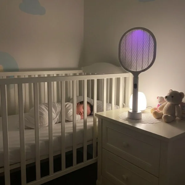 USB Şarjlı Standlı Şarj Göstergeli UV Işıklı Beyaz Sinek Öldürme Raketi