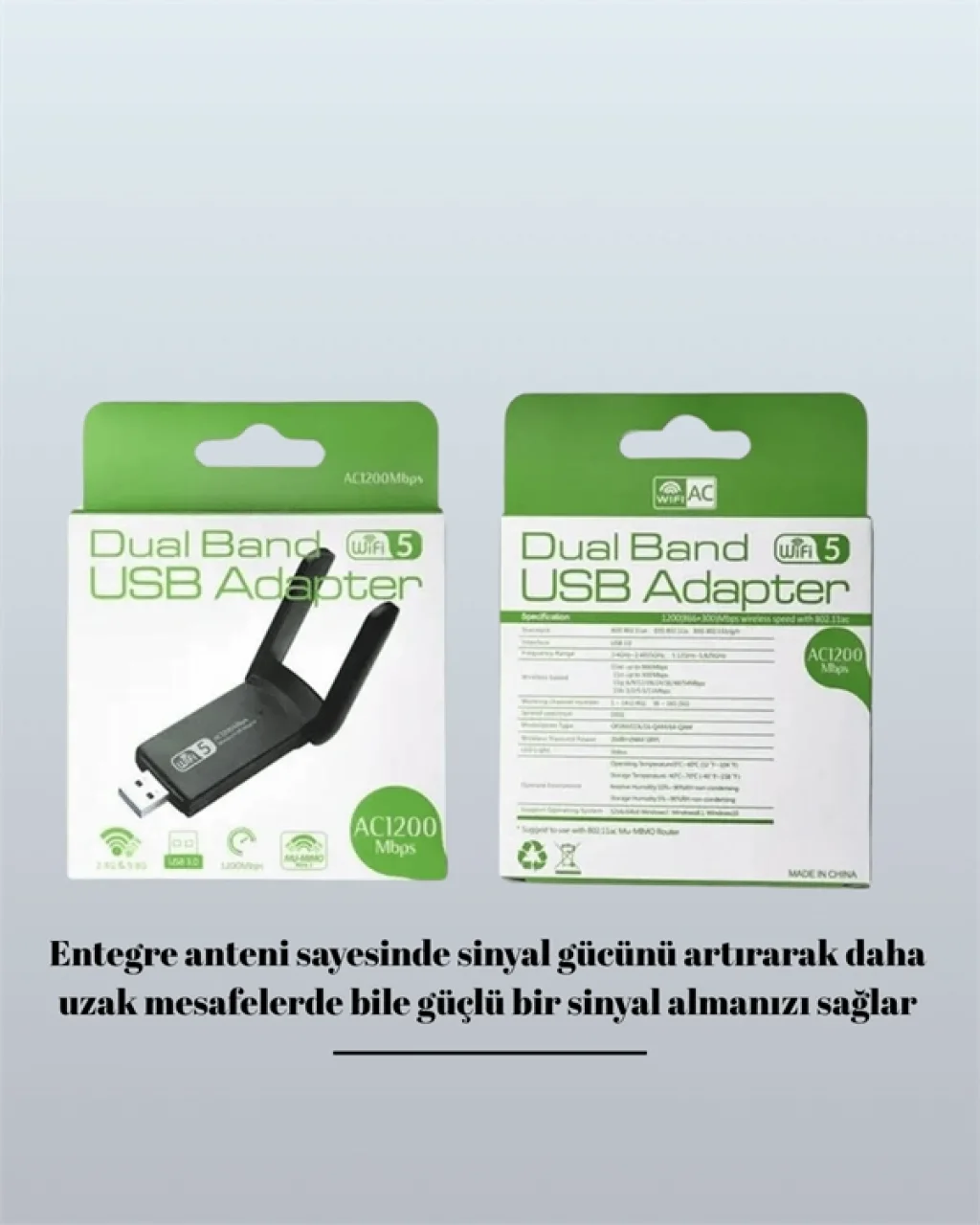 AC1200 USB WiFi adaptör, 2.4GHz ve 5GHz bantlarında toplam 1200 Mbps’ye kadar veri aktarım hızı sunar. 2.4GHz bandında 300 Mbps, 5GHz bandında ise 867 Mbps hızlara ulaşarak yüksek çözünürlüklü video izleme, online oyun oynama ve dosya indirme işlemlerinde kesintisiz performans sağlar.Donanımında kullanılan Realtek RTL8812BU yonga seti, güvenilir ve stabil bir kablosuz ağ bağlantısı sunmak için optimize edilmiştir. USB 3.0 arayüzü, daha yüksek hızda veri iletimi için tasarlanmış olup, adaptörün tam performansla çalışabilmesi için USB 3.0 portuna bağlanması önerilir.Tak çalıştır özelliği sayesinde, Windows 10 ve üzeri işletim sistemlerinde ek yazılım gerektirmeden doğrudan kullanılabilir. Diğer işletim sistemlerinde ise kutu içeriğinde yer alan sürücü CD’si ile kolay kurulum yapılabilir.