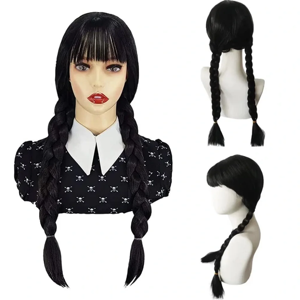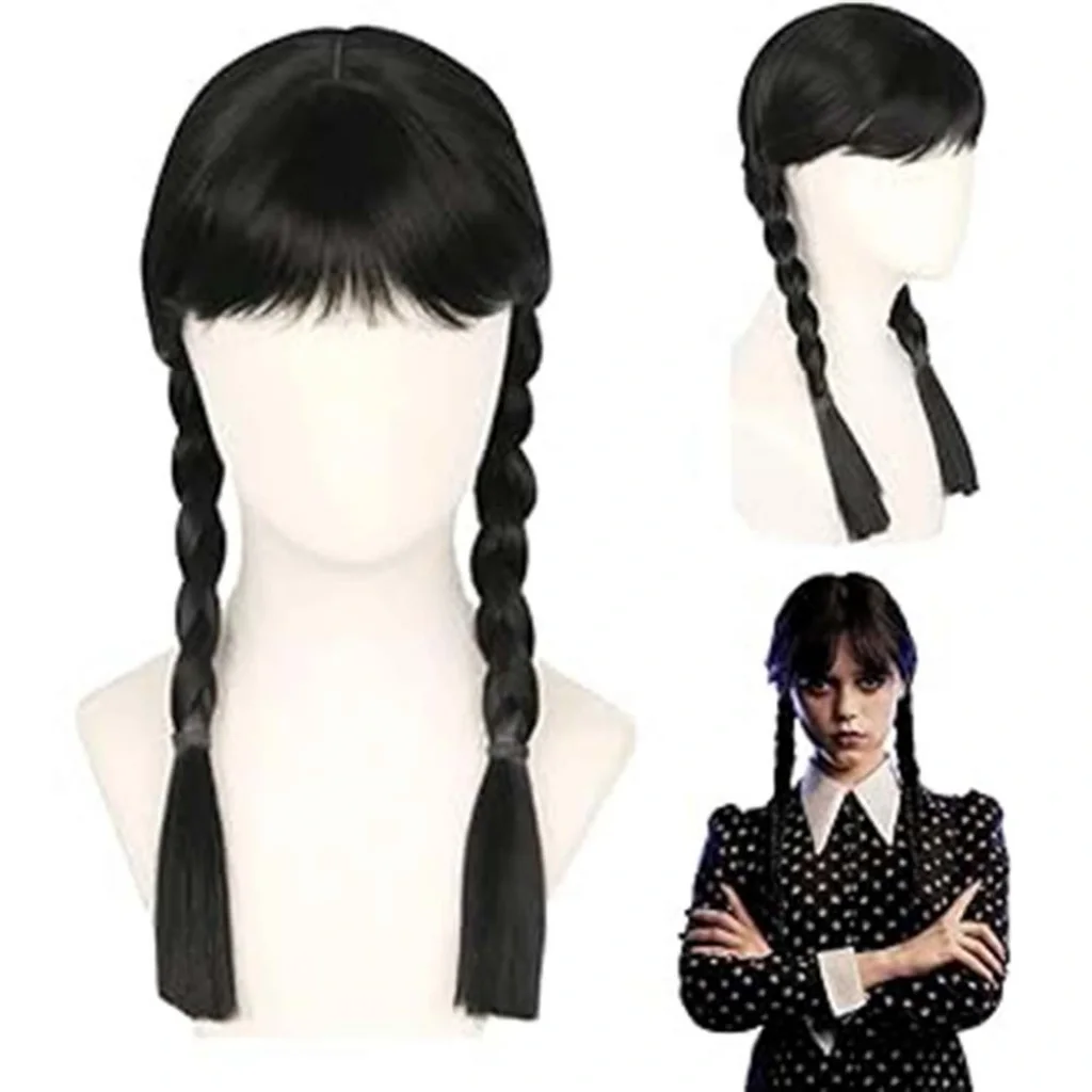 WEDNESDAY SİYAH ÖRGÜLÜ PERUKÜrün ÖzellikleriWednesday Siyah Örgülü Peruk, klasik Wednesday Addams stilini yansıtmak için mükemmel bir tercihtir. Siyah renkli ve uzun örgülü saçlarıyla, şık ve gotik bir görünüm sunar. Partiler, kostüm etkinlikleri veya günlük kullanımda rahatlıkla tercih edilebilir. Yüksek kaliteli malzeme kullanılarak üretilmiştir ve doğal bir görünüm sağlar. Kolayca takılabilir ve rahatça kullanılabilir.Paket İçeriği1 Adet Wednesday Siyah Örgülü Peruk