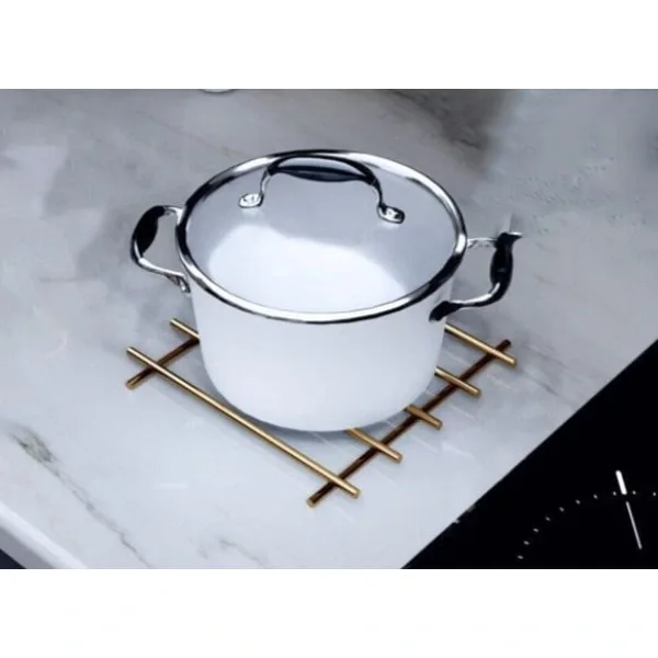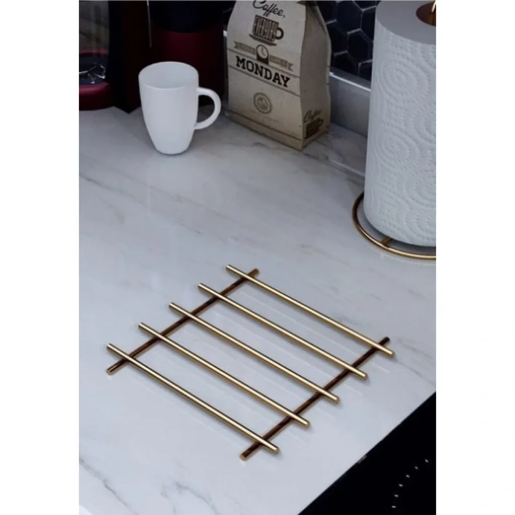 YANMAZ PASLANMAZ ÇELİK NİHALE GOLD RENK Ürün ÖzellikleriŞık gold rengi ve dayanıklı paslanmaz çelik malzemesi ile üretilen bu yanmaz nihale, mutfaklarda hem estetik hem de işlevsel bir çözüm sunar. 20x20 cm ölçülerindeki kare formu sayesinde geniş tencere ve tavalar için yeterli alan sağlar. Yüksek ısıya dayanıklı yapısıyla sıcak mutfak ekipmanlarını doğrudan tezgaha koymadan önce güvenle kullanabilirsiniz. Kaymaz silikon ayakları sayesinde tezgah yüzeyini korur ve kaymaları önler. Modern ve zarif görünümüyle mutfağınıza zarafet katar. Hem günlük kullanımda hem de misafir ağırlarken pratiklik sağlar.Paket İçeriği1 Adet Yanmaz Paslanmaz Çelik Nihale Gold Renk