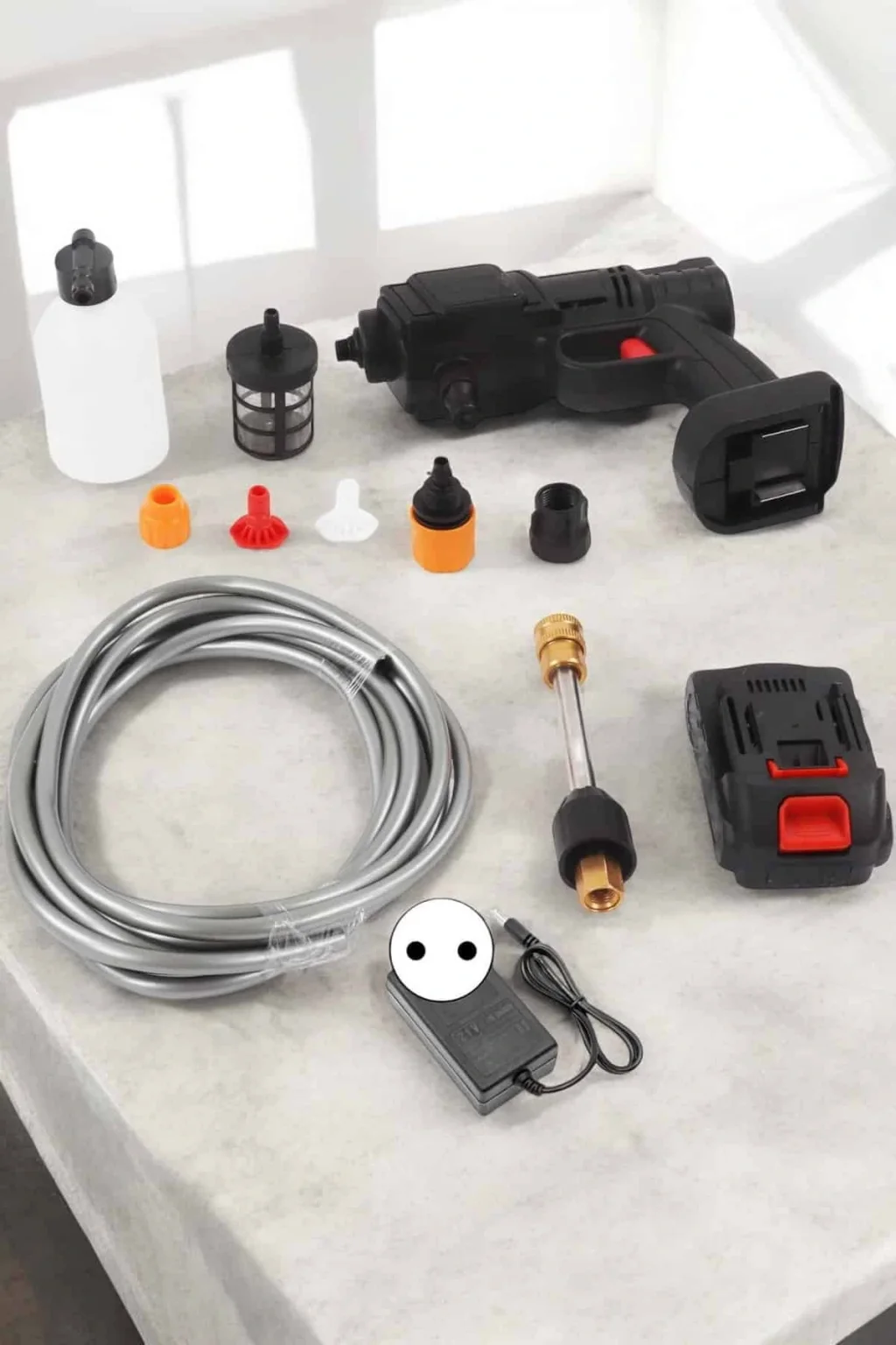 Kendinden emişli veya musluk bağlantılı iki farklı su giriş sistemiyle donatılmış olan bu cihaz, su kaynağını seçme özgürlüğü sunar. Kovadan, gölden, nehirden veya musluktan kolayca su çekebilir ve 5 metrelik filtreli hortumu sayesinde suyu temizleyerek daha etkili bir temizlik sağlar. Tüm bağlantı arayüzleri kolayca monte edilebilecek şekilde tasarlanmıştır ve cihaz, geleneksel yüksek basınçlı temizleyicilere kıyasla çok daha hafif ve taşınabilirdir. Sadece 2 kg ağırlığındaki kompakt tasarımıyla bahçeden arabanıza kadar her yerde rahatlıkla kullanılabilir.