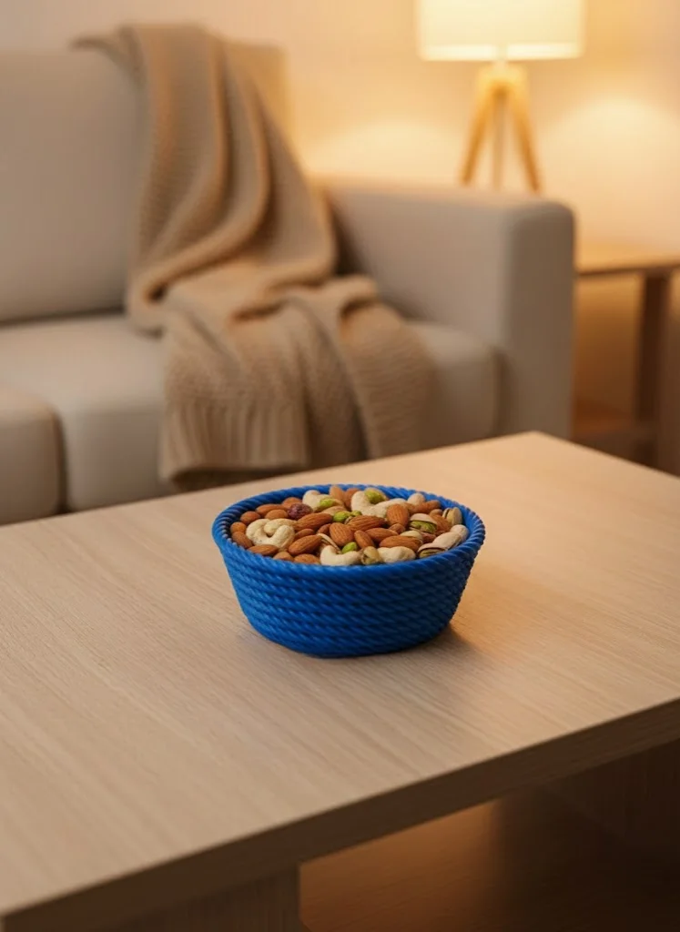 Yuvarlak Çerezlik Lacivert 4×12 cm ölçüsüyle salon, mutfak ve sehpa üstü kullanımlar için ideal bir dekoratif sunum ürünüdür. Kompakt boyutu sayesinde fazla yer kaplamadan çerez, kuru yemiş, draje ve küçük atıştırmalıkların şık şekilde servis edilmesini sağlar. Lacivert rengi bulunduğu ortama modern ve zarif bir dokunuş katar.Örgü dokulu dış yüzeyi ürüne hem estetik hem de dekoratif bir karakter kazandırır. Günlük kullanımda olduğu kadar misafir sunumlarında da tercih edilebilir. Salon sehpaları, orta masa, yan sehpa ve raf üstlerinde rahatlıkla konumlandırılabilir. Hafif yapısı sayesinde kolay taşınır ve farklı alanlarda pratik kullanım sunar.Çerez, fındık, badem, leblebi gibi kuru yemişlerin yanı sıra şekerleme ve lokum sunumlarında da kullanılabilir. Modern, bohem ve sade dekorasyon tarzlarıyla uyum sağlar. Lacivert rengi sayesinde açık ve koyu tonlu mobilyalarla dengeli bir görünüm oluşturur.